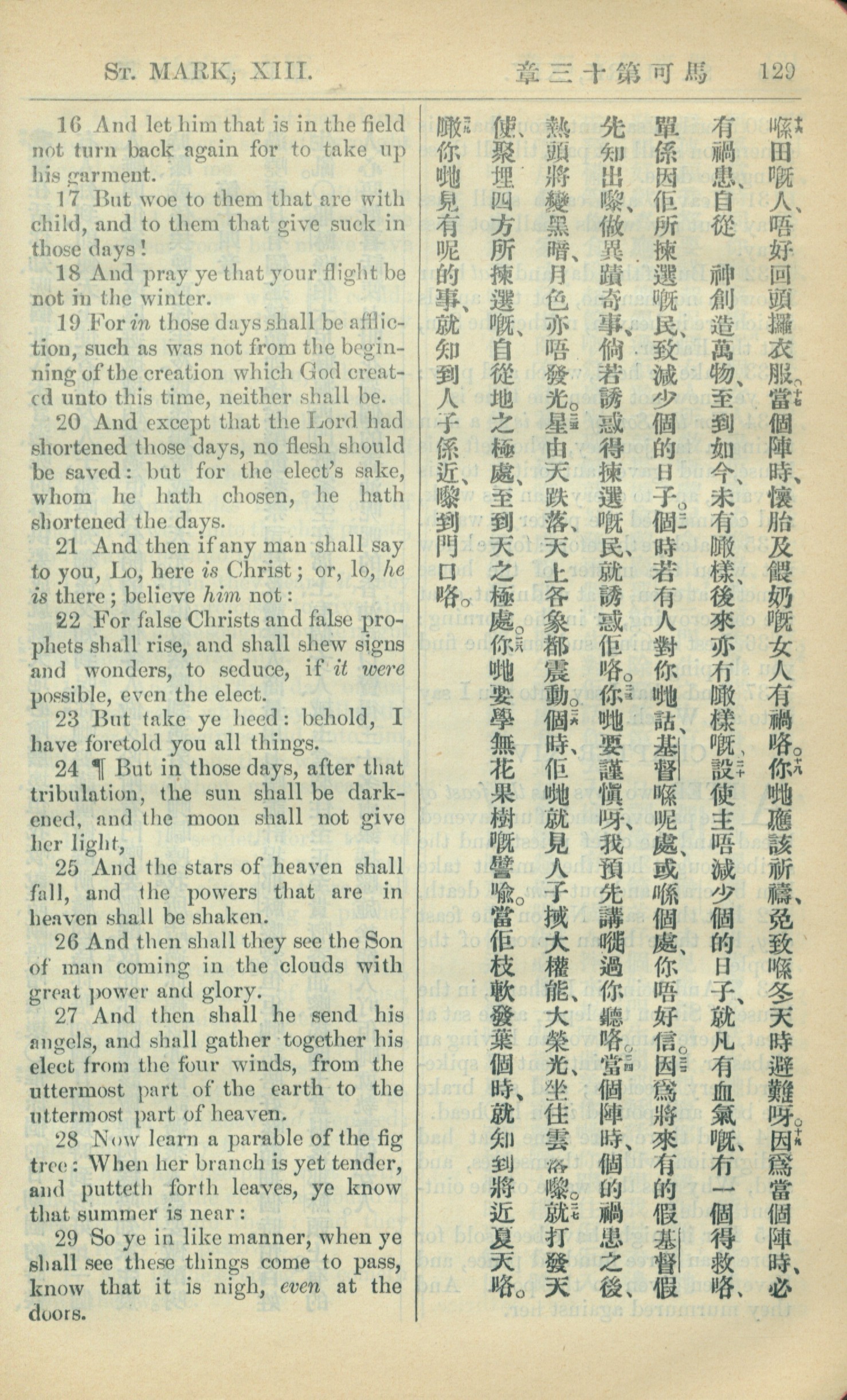 1909年中西字新约全书 马可福音 13 章 16 节到 13 章 29 节