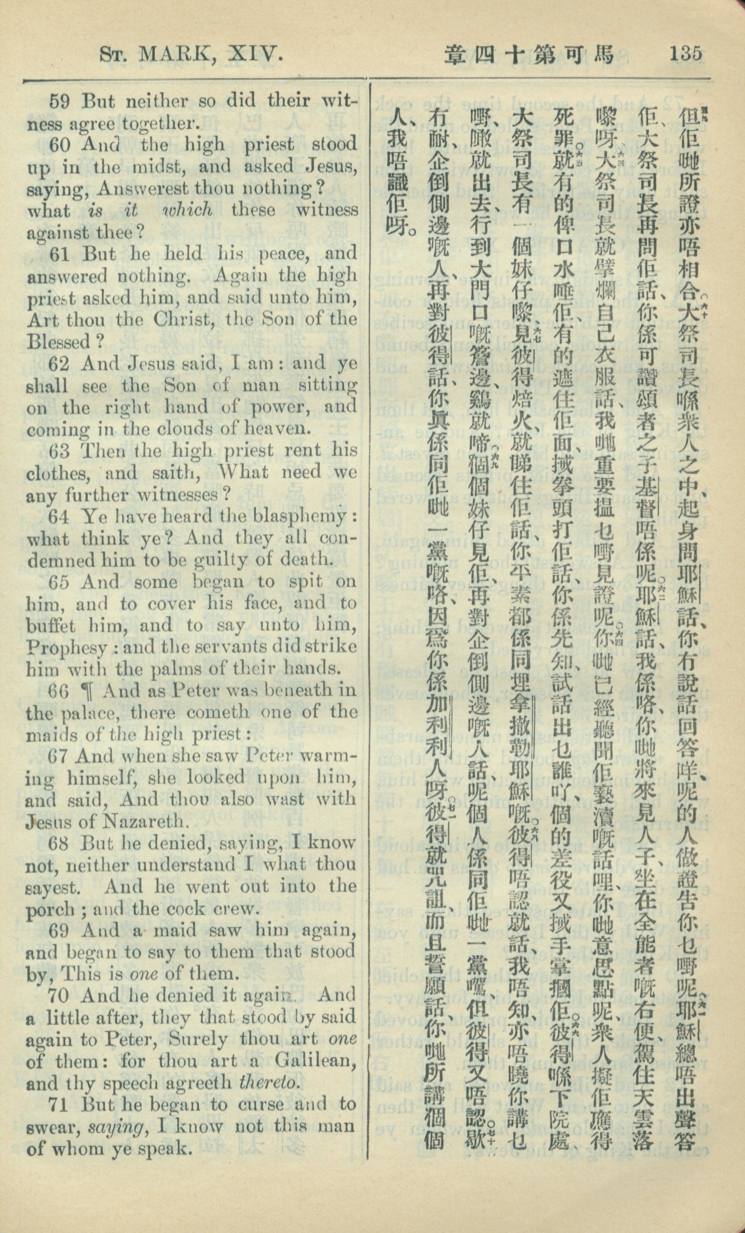1909年中西字新约全书 马可福音 14 章 59 节到 14 章 71 节