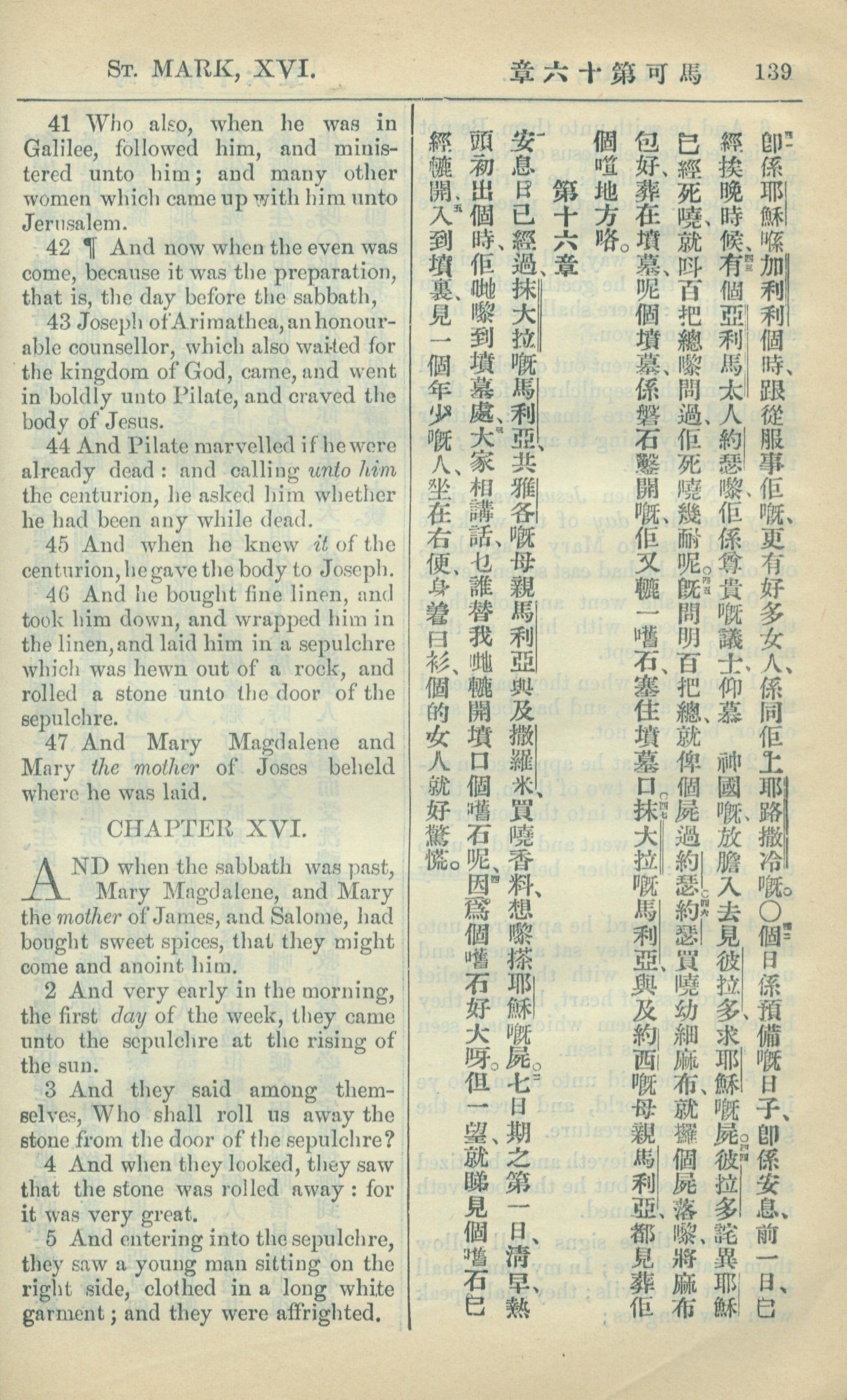 1909年中西字新约全书 马可福音 15 章 41 节到 16 章 5 节