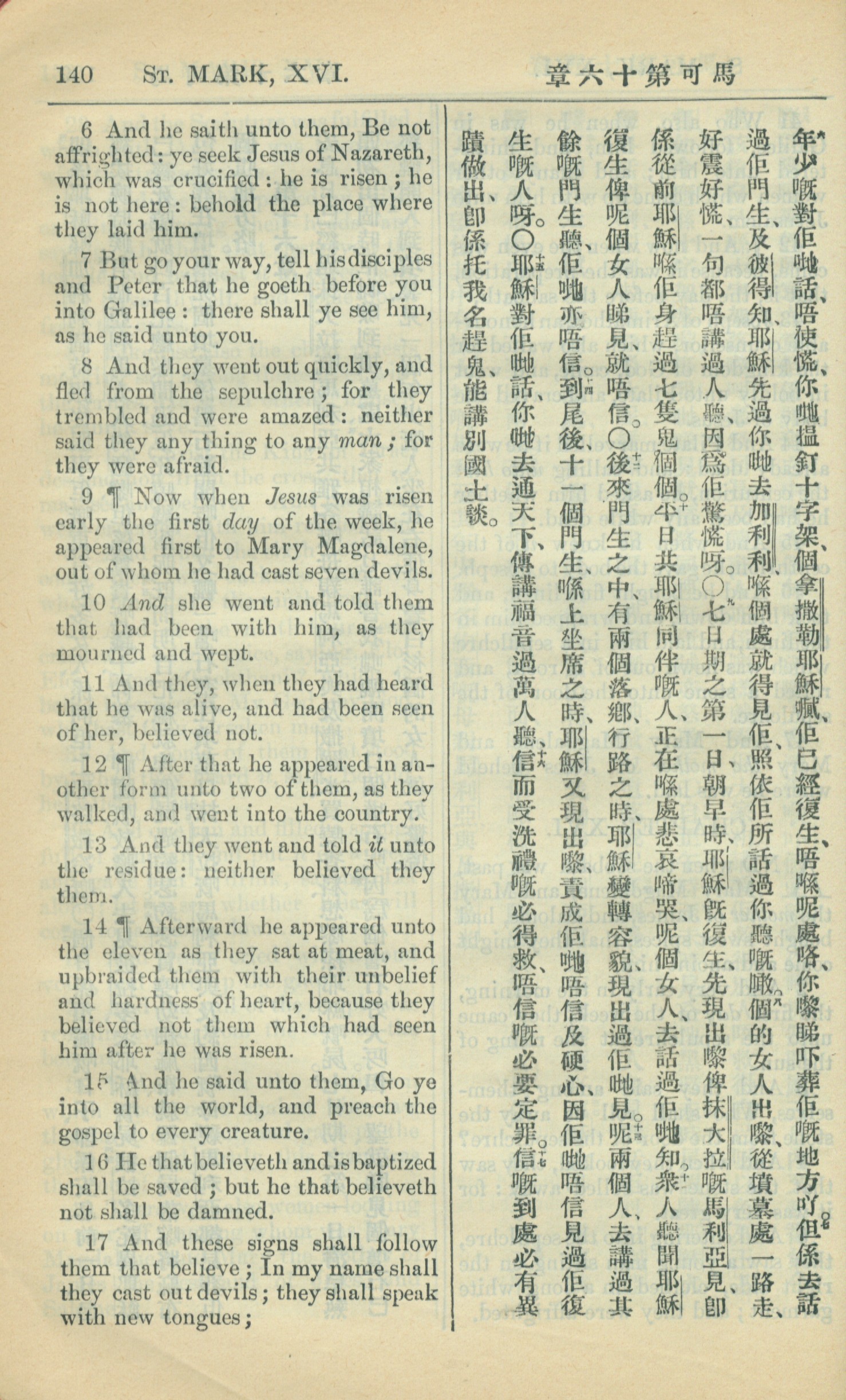 1909年中西字新约全书 马可福音 16 章 6 节到 16 章 17 节