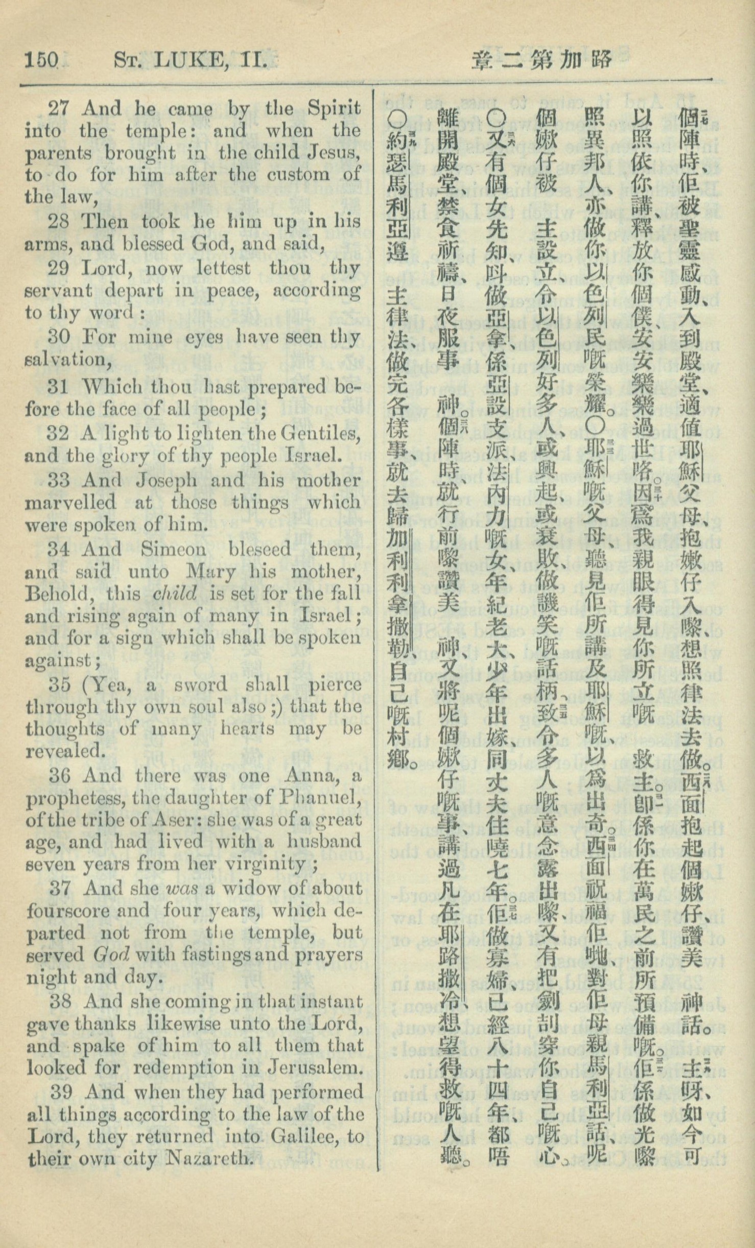 1909年中西字新约全书 路加福音 2 章 27 节到 2 章 39 节