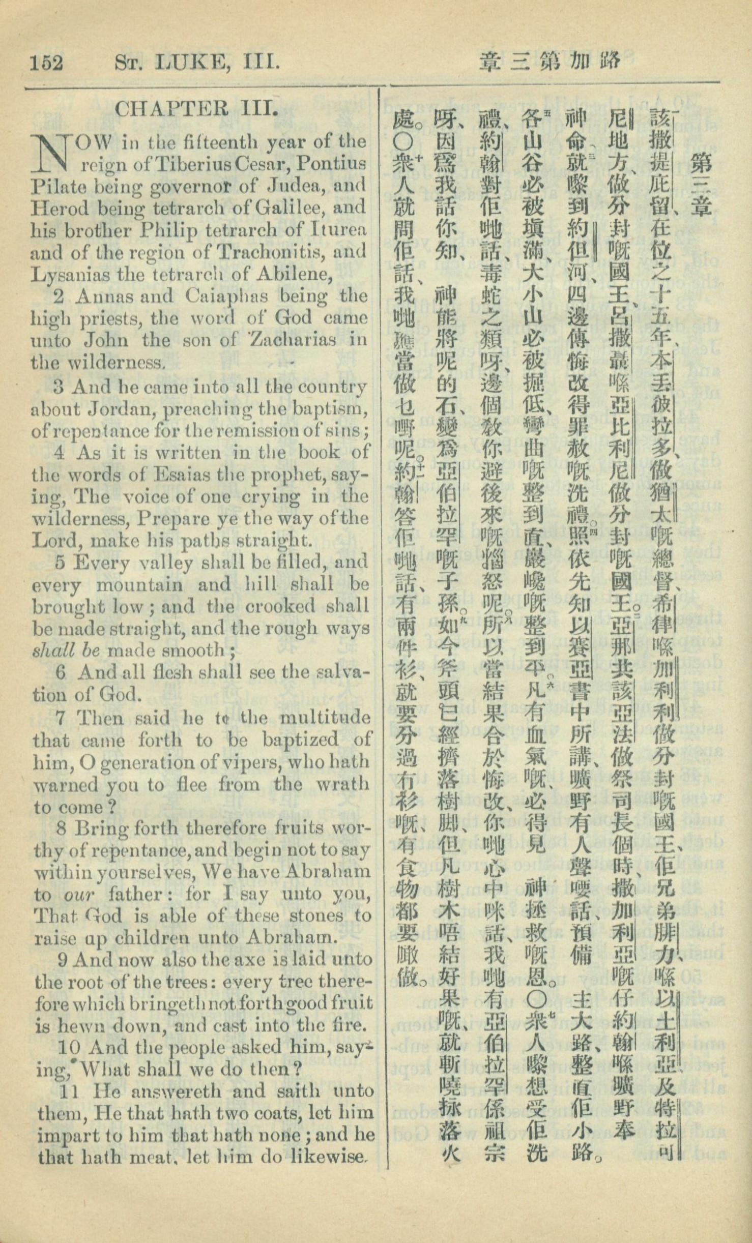 1909年中西字新约全书 路加福音 3 章 1 节到 3 章 11 节