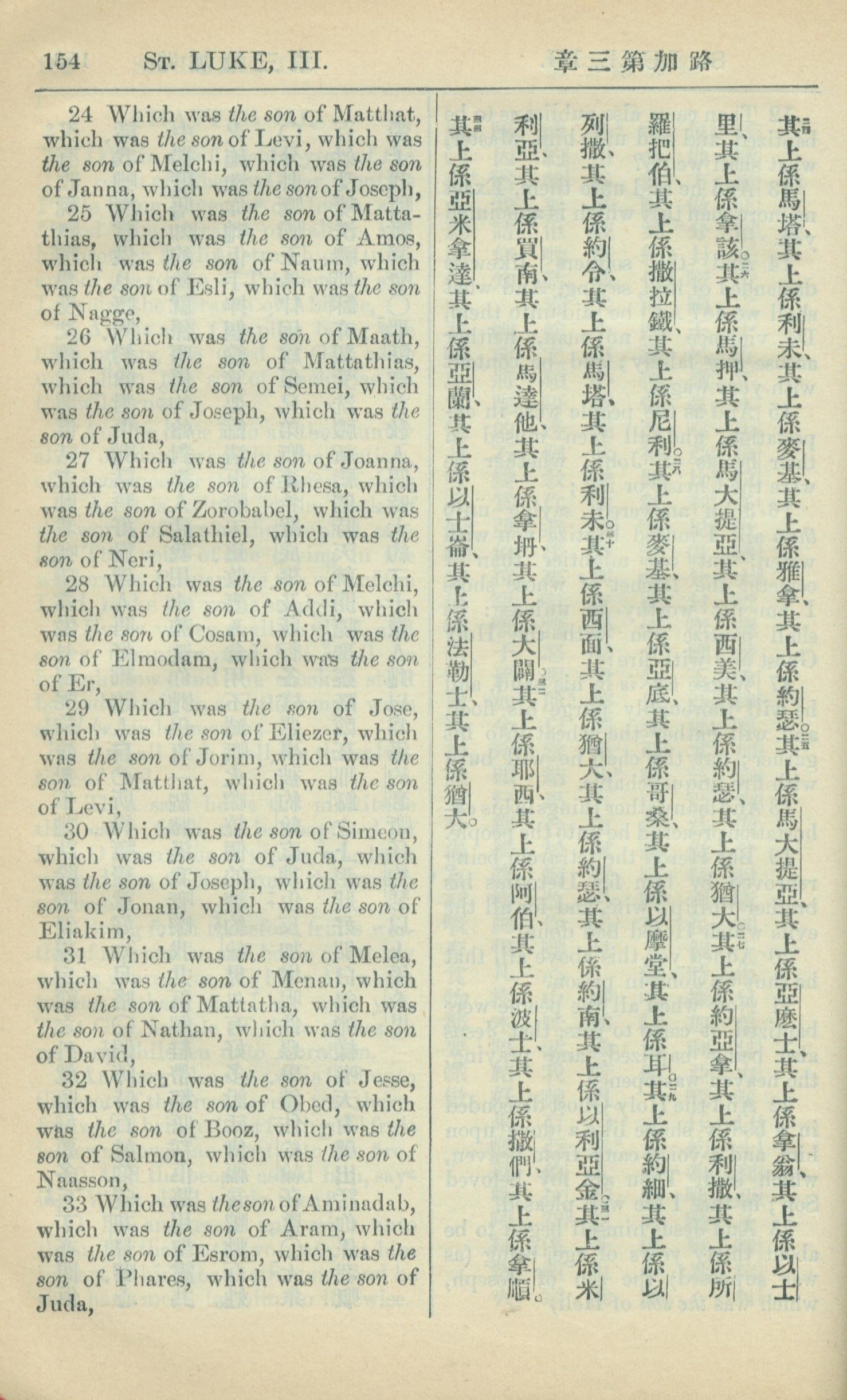 1909年中西字新约全书 路加福音 3 章 24 节到 3 章 33 节
