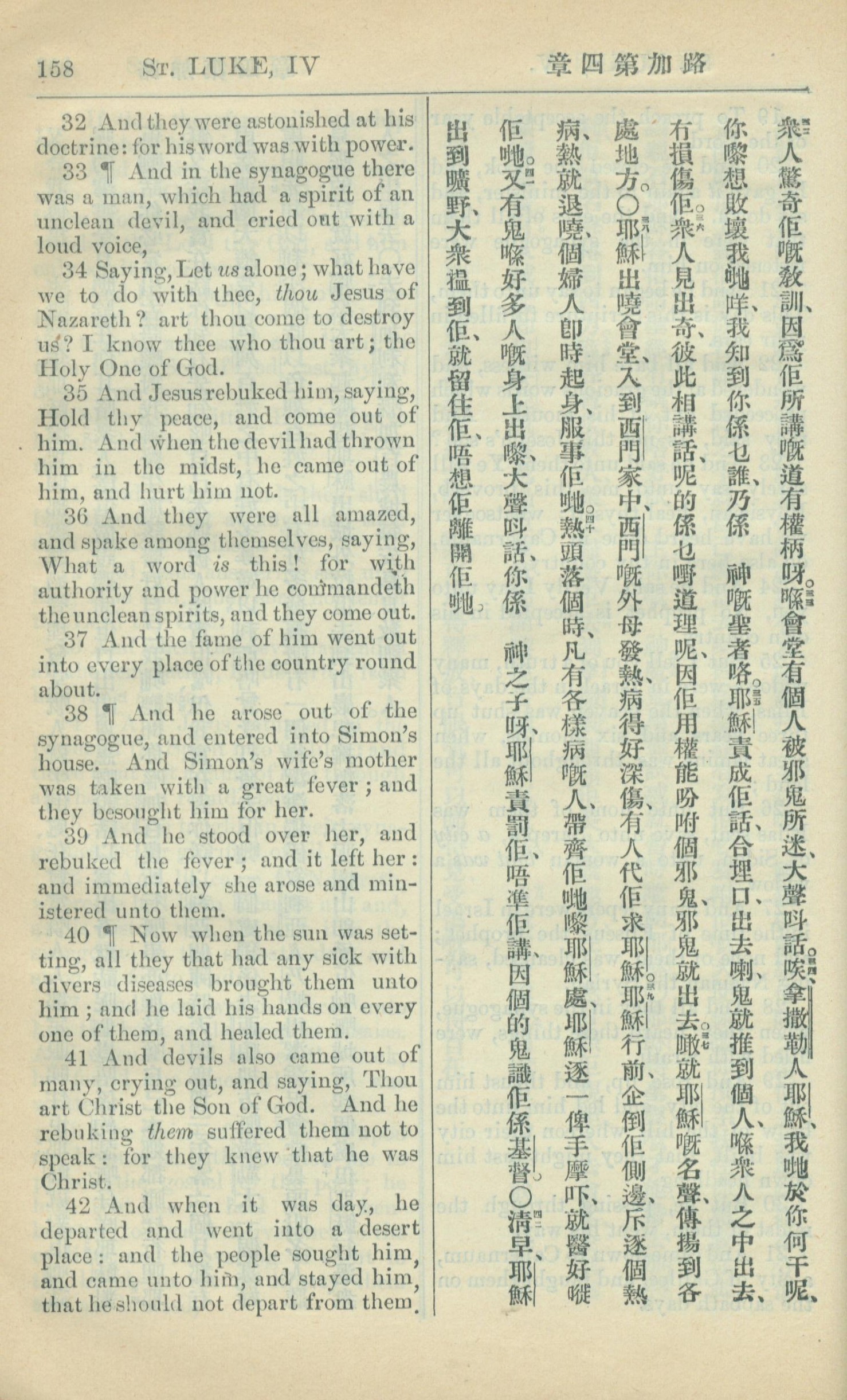 1909年中西字新约全书 路加福音 4 章 32 节到 4 章 42 节