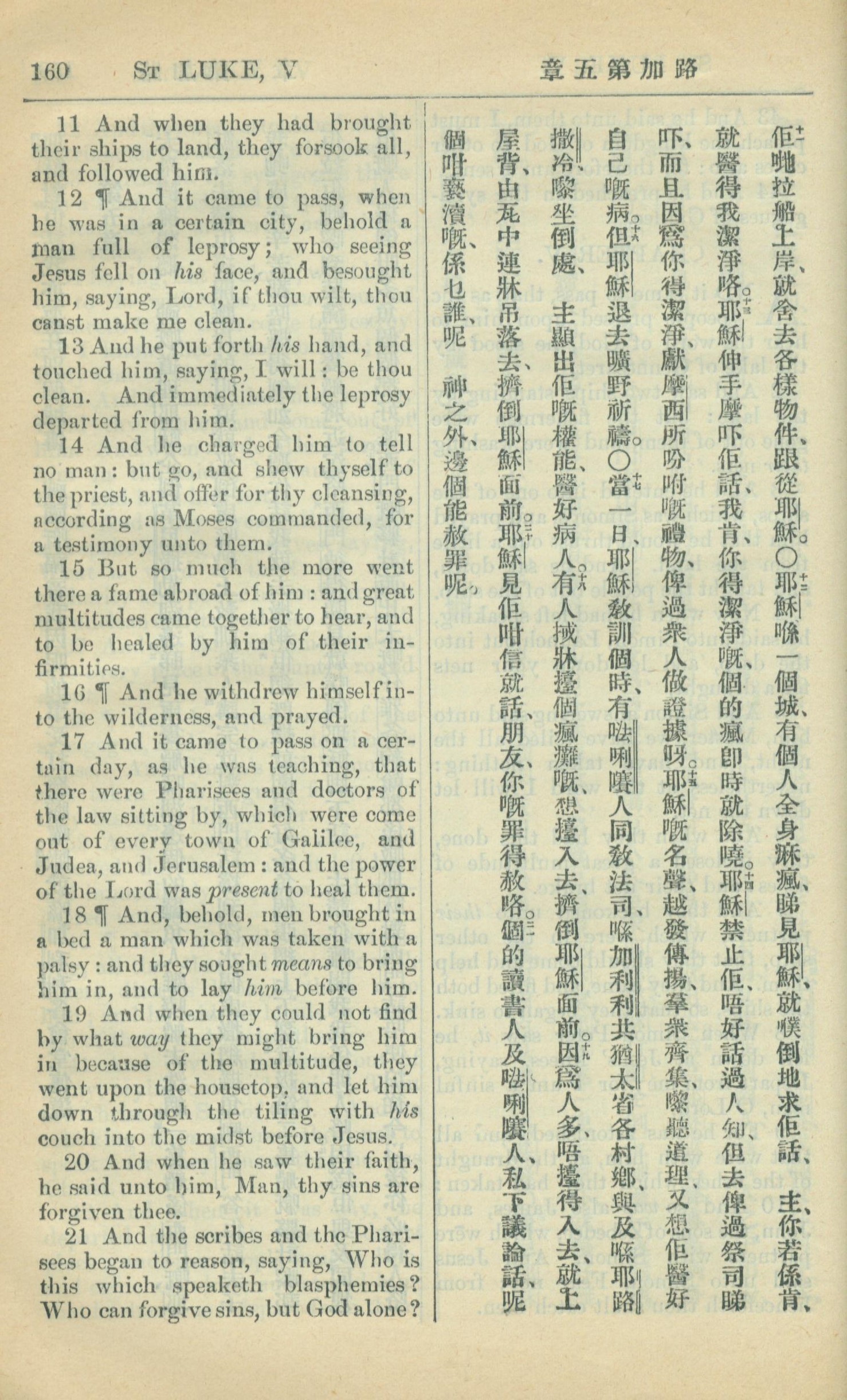 1909年中西字新约全书 路加福音 5 章 11 节到 5 章 21 节
