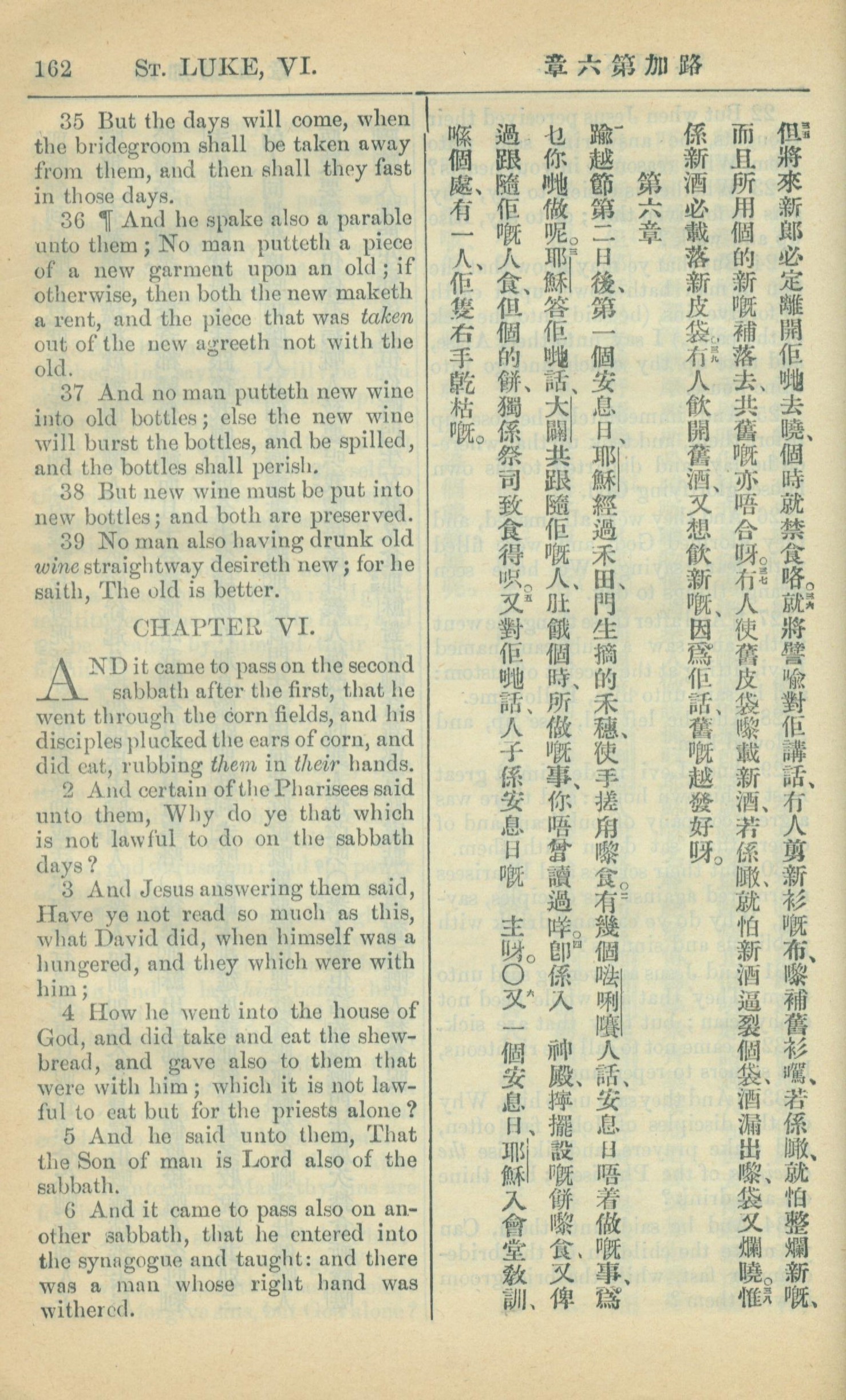 1909年中西字新约全书 路加福音 5 章 35 节到 6 章 6 节