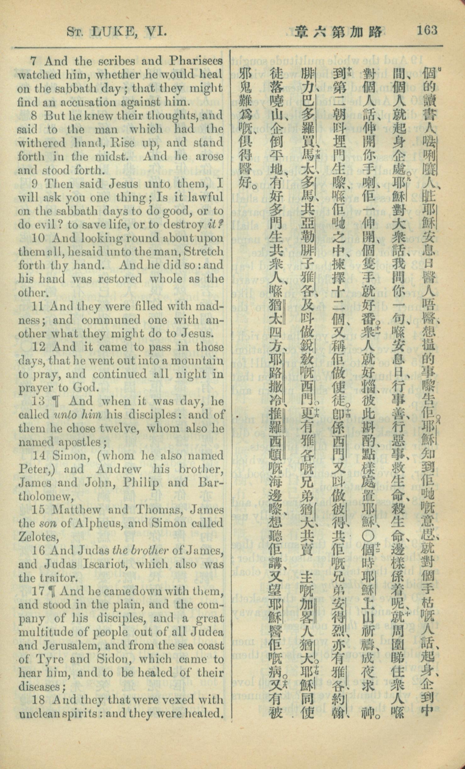 1909年中西字新约全书 路加福音 6 章 7 节到 6 章 18 节