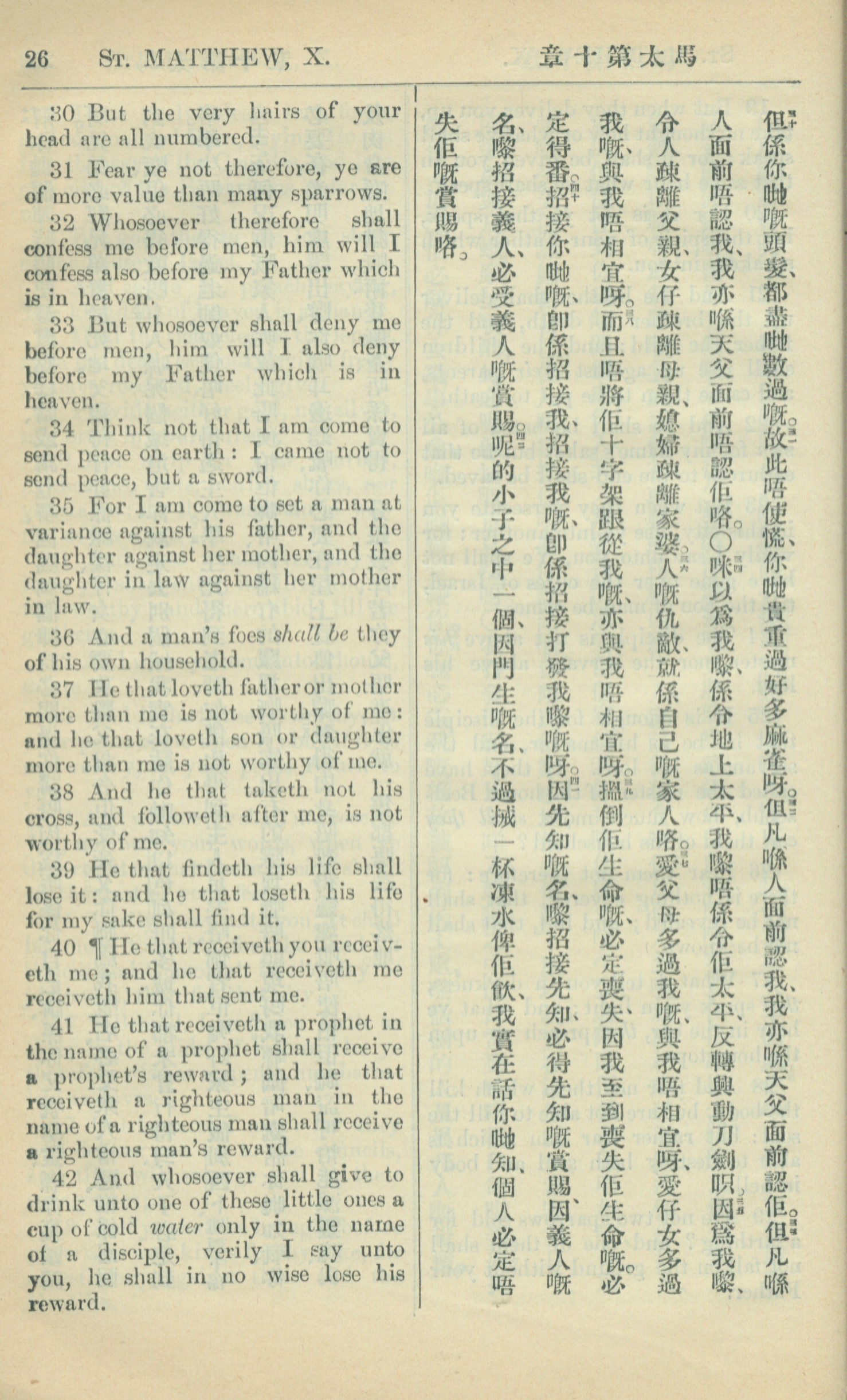 1909年中西字新约全书 马太福音 10 章 30 节到 10 章 42 节