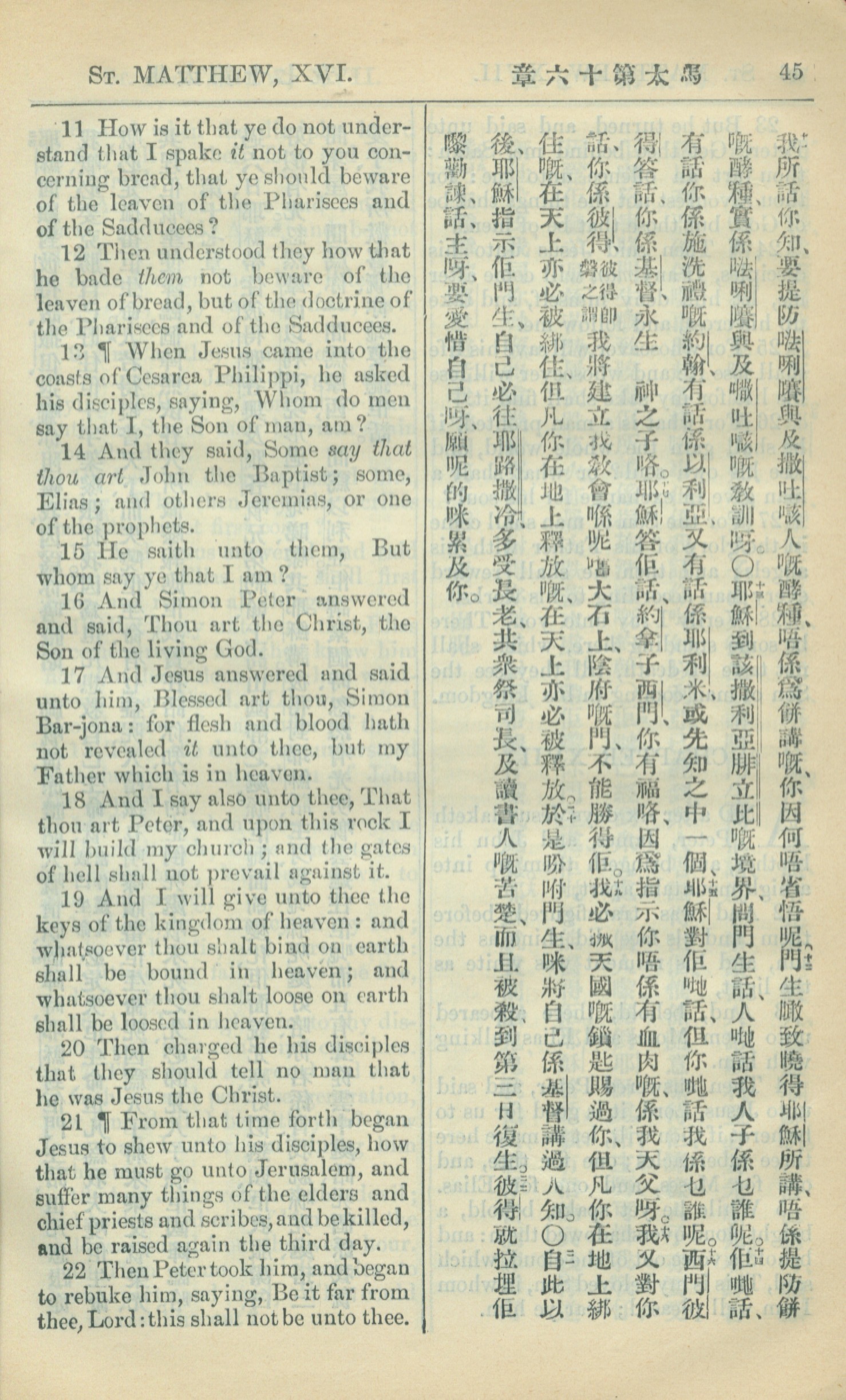 1909年中西字新约全书 马太福音 16 章 11 节到 16 章 22 节