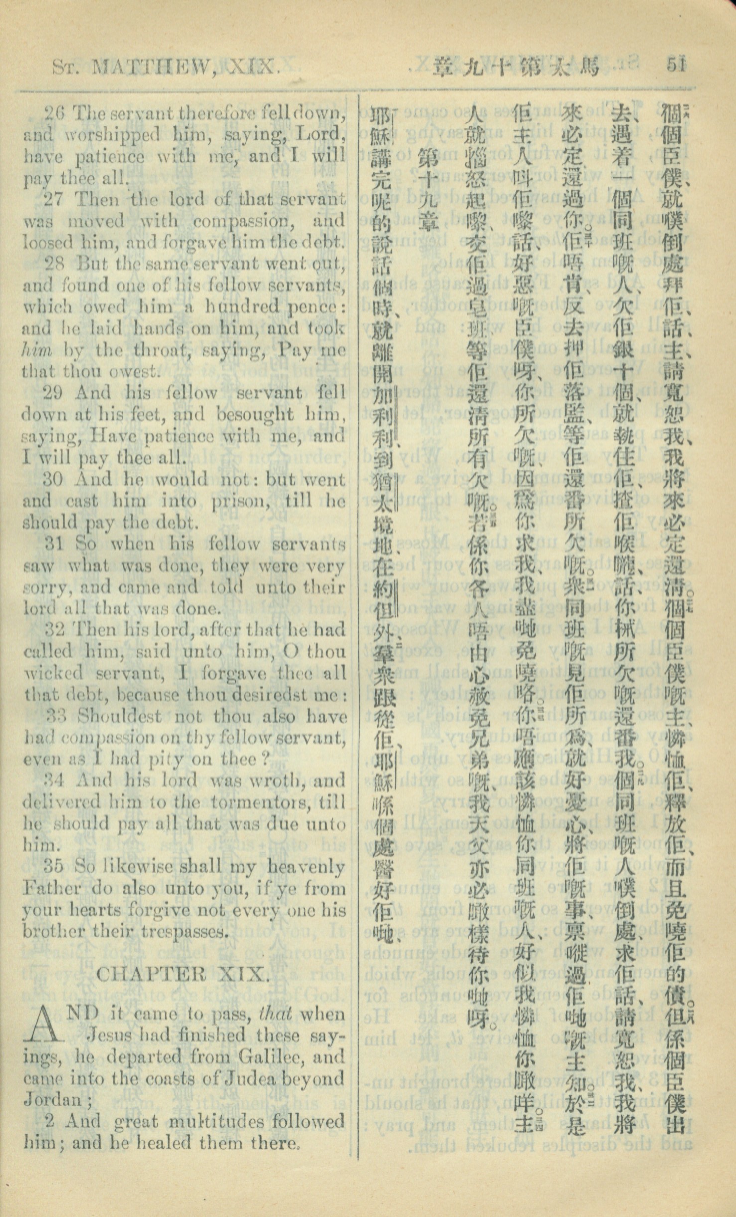 1909年中西字新约全书 马太福音 18 章 26 节到 19 章 2 节
