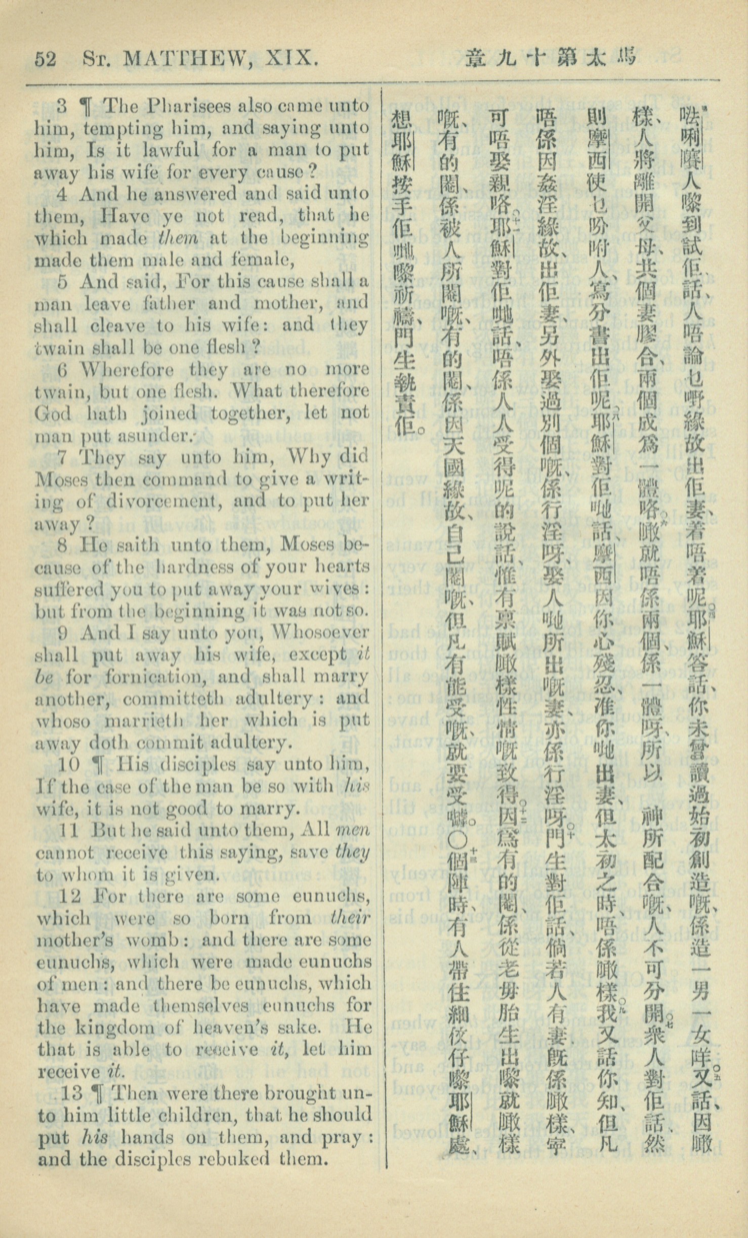 1909年中西字新约全书 马太福音 19 章 3 节到 19 章 13 节