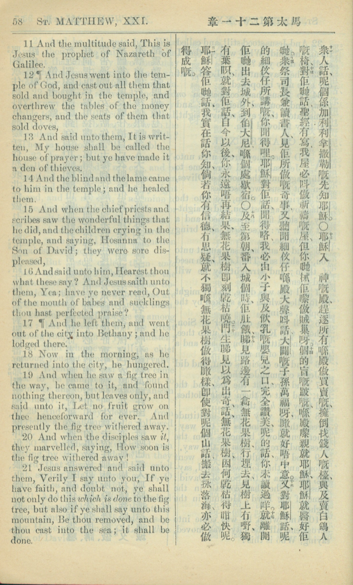 1909年中西字新约全书 马太福音 21 章 11 节到 21 章 21 节