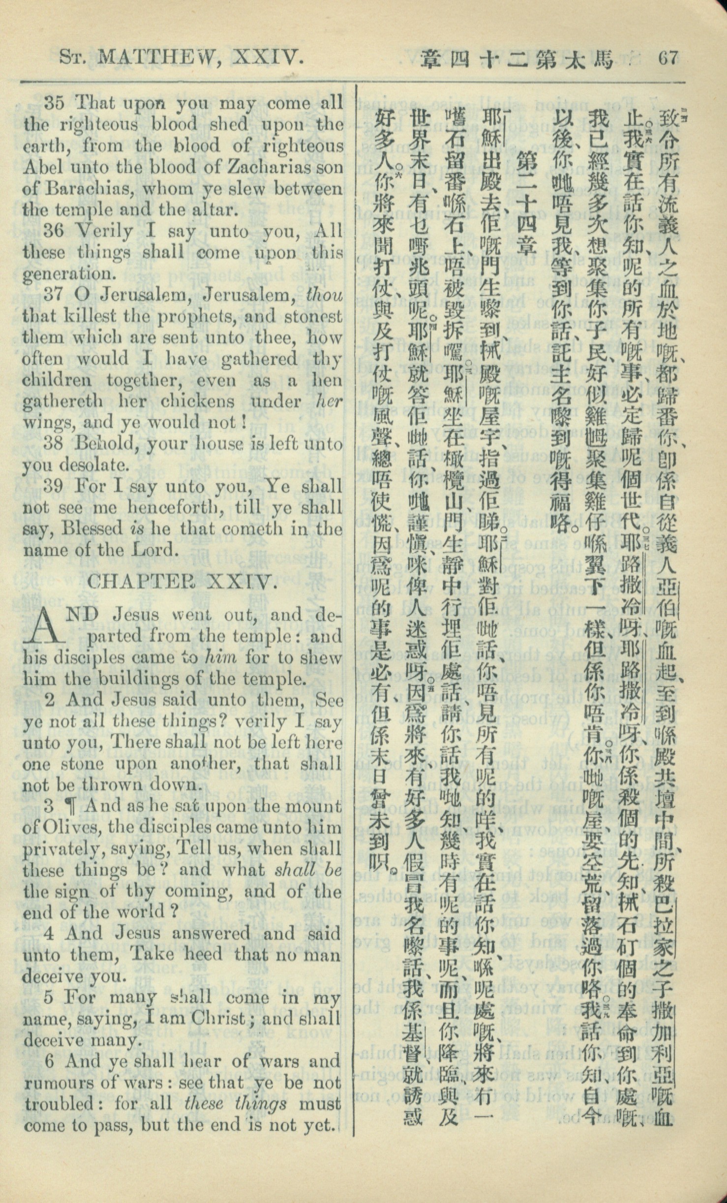 1909年中西字新约全书 马太福音 23 章 35 节到 24 章 6 节