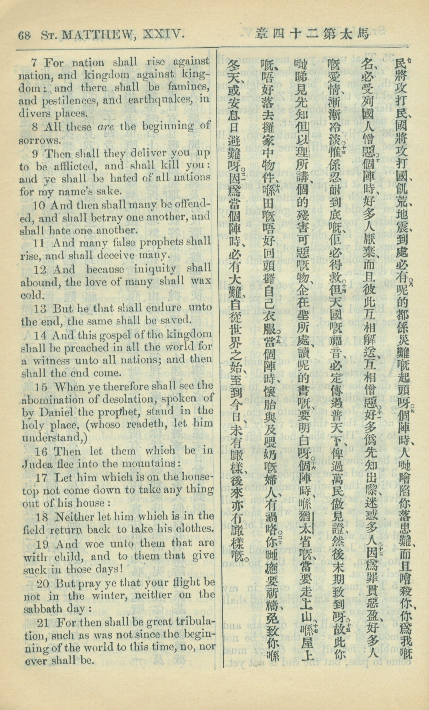 1909年中西字新约全书 马太福音 24 章 7 节到 24 章 21 节
