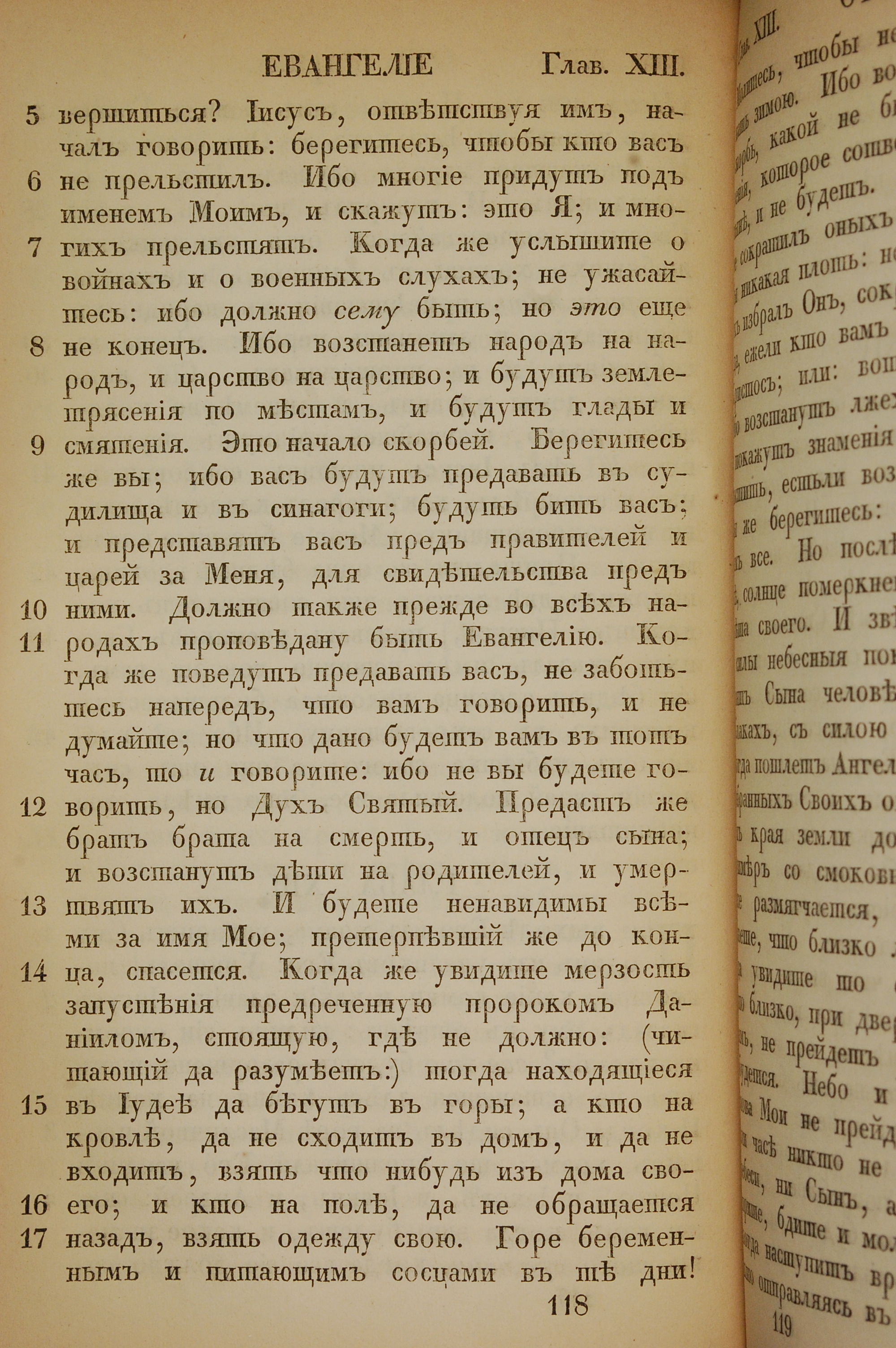 1855年俄文新约全书 马可福音 13 章 5 节到 13 章 17 节