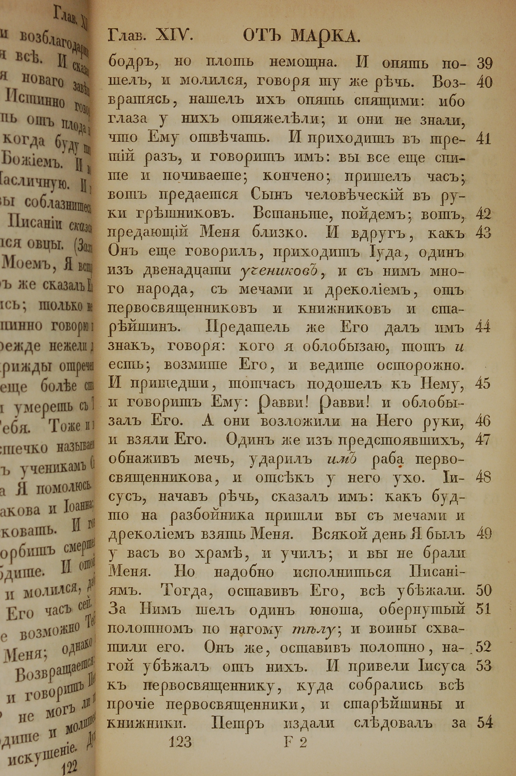 1855年俄文新约全书 马可福音 14 章 39 节到 14 章 54 节