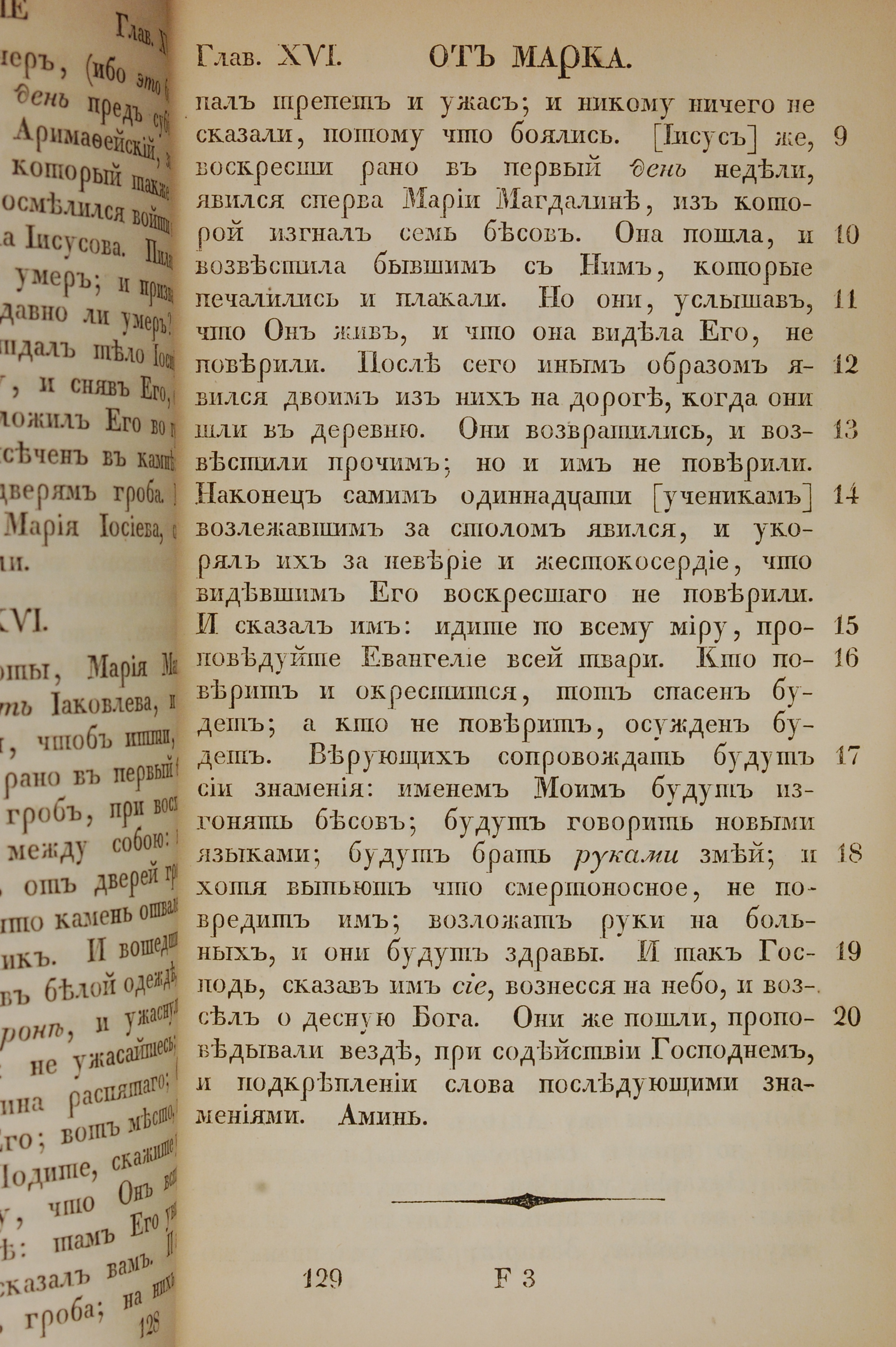 1855年俄文新约全书 马可福音 16 章 9 节到 16 章 20 节