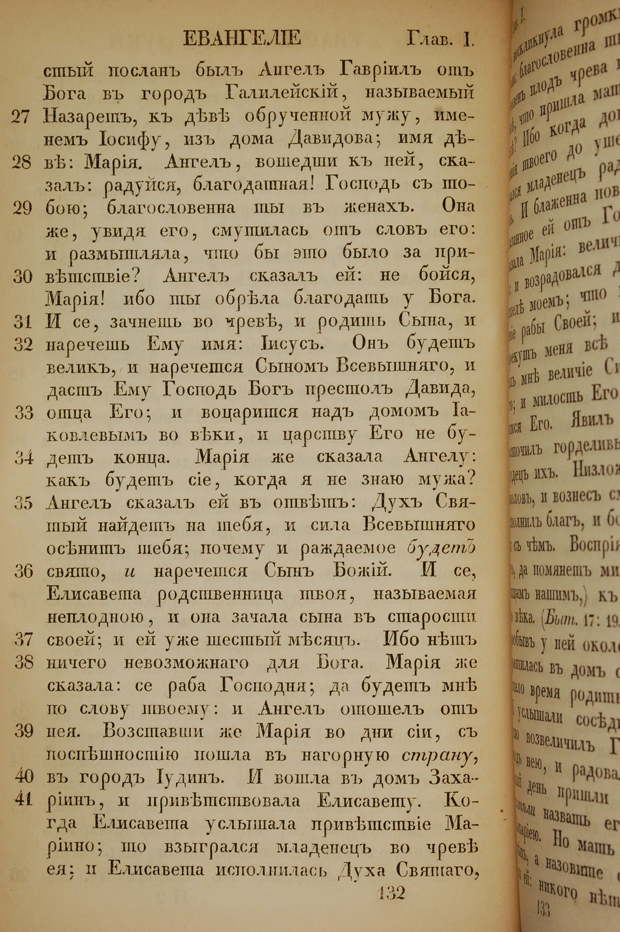 1855年俄文新约全书 路加福音 1 章 27 节到 1 章 41 节