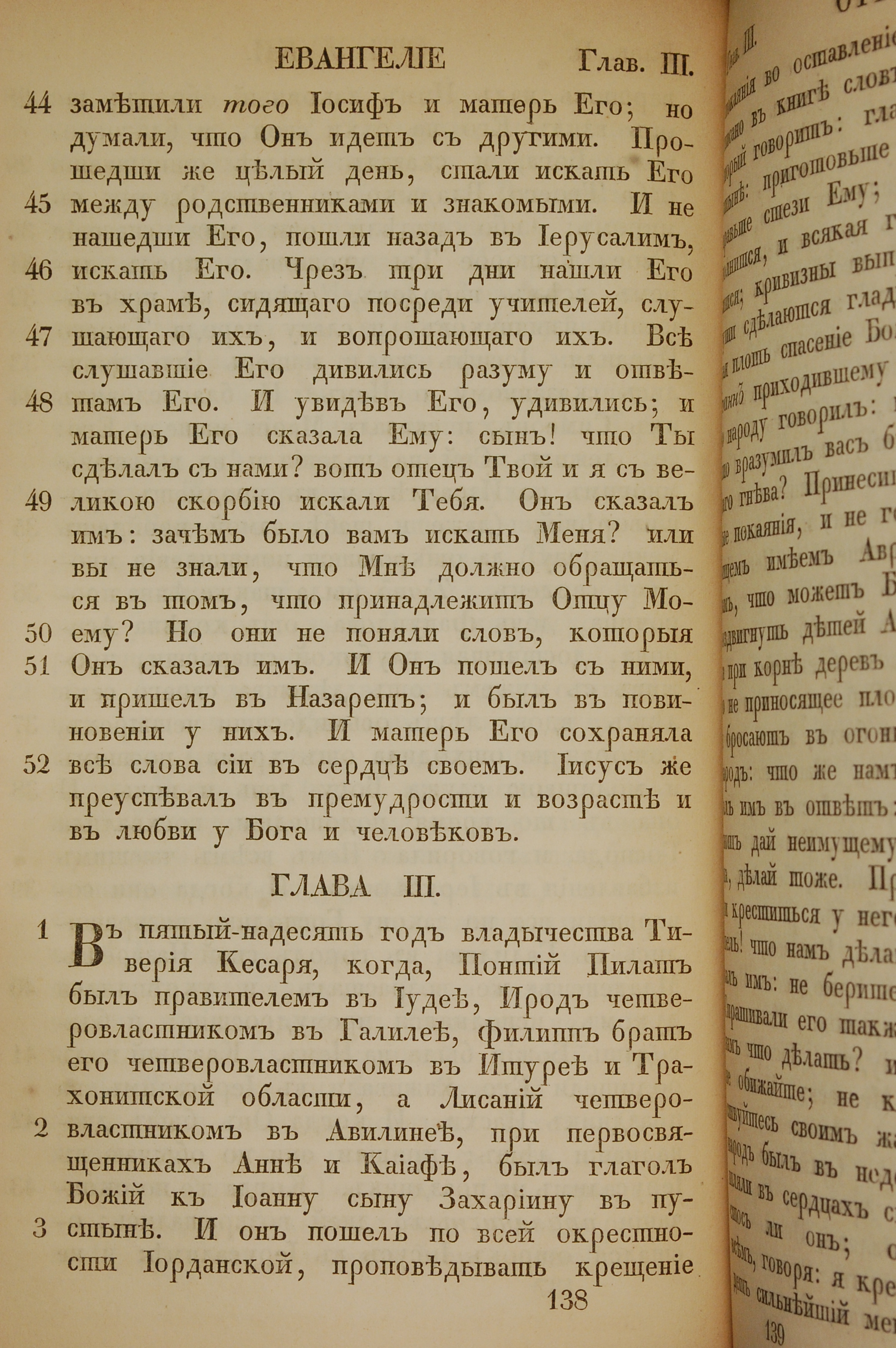 1855年俄文新约全书 路加福音 2 章 44 节到 3 章 3 节