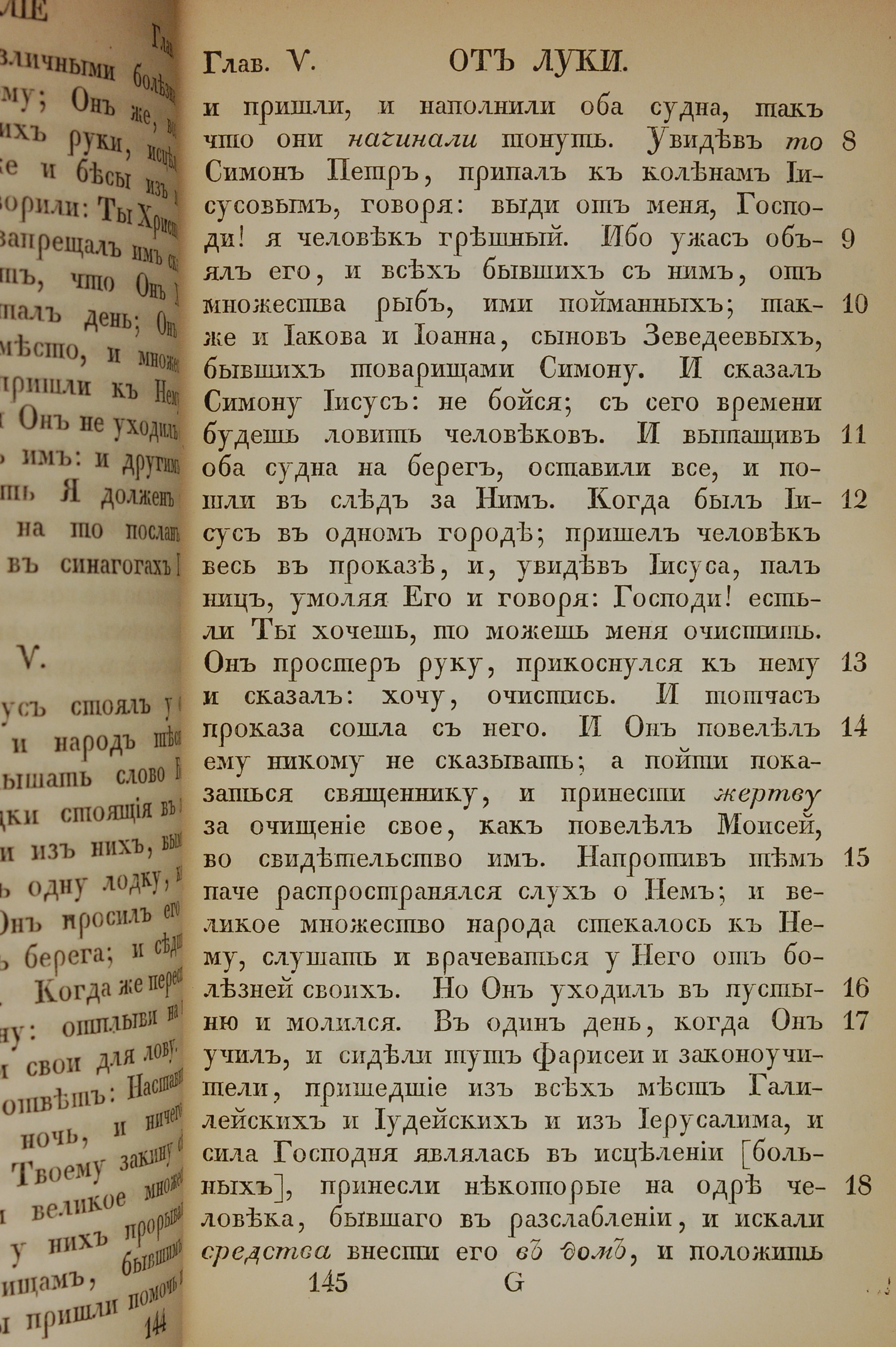 1855年俄文新约全书 路加福音 5 章 8 节到 5 章 18 节