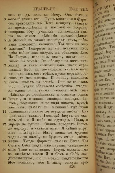 1855年俄文新约全书 约翰福音 8 章 3 节到 8 章 14 节