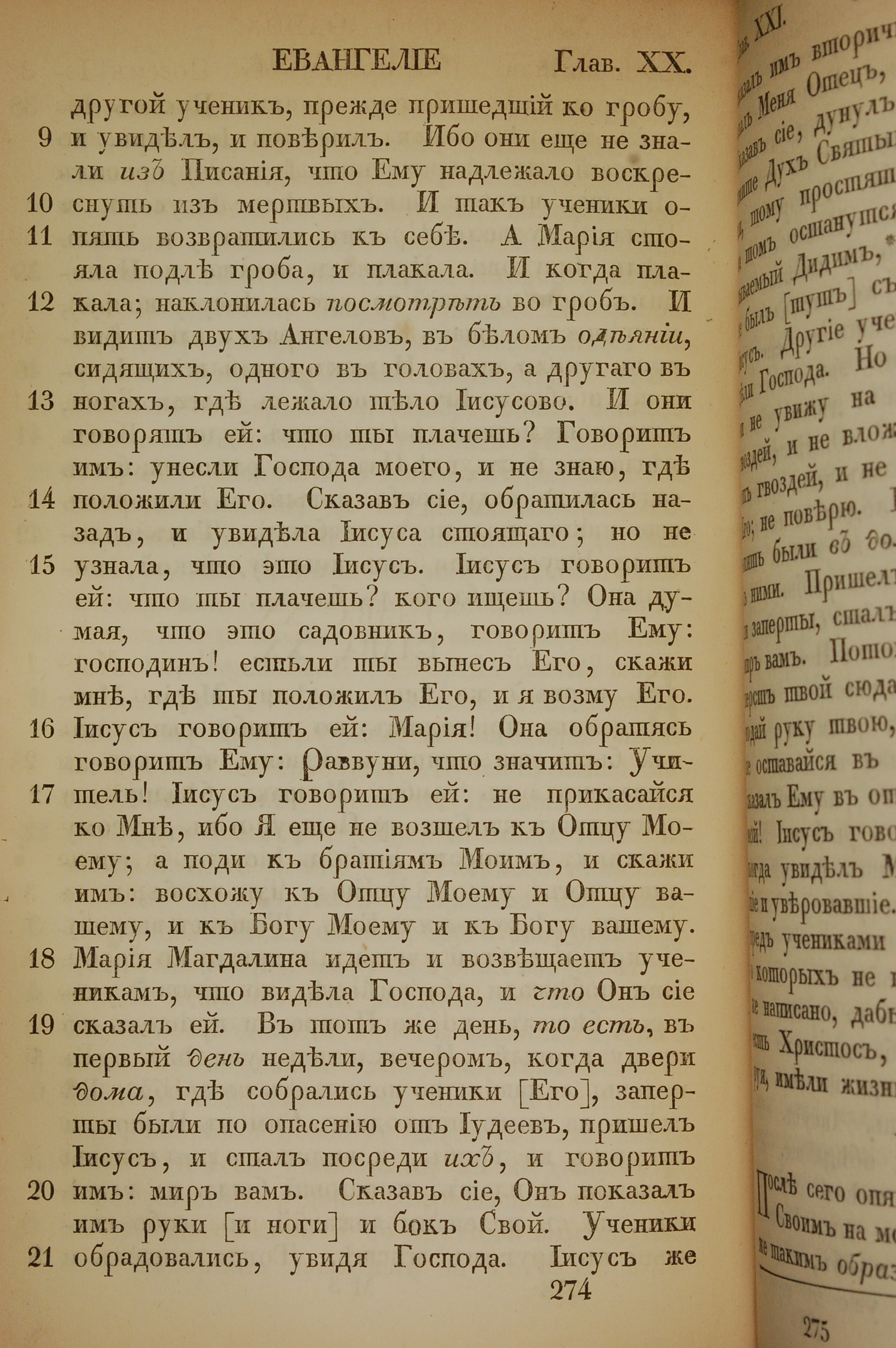 1855年俄文新约全书 约翰福音 20 章 9 节到 20 章 21 节