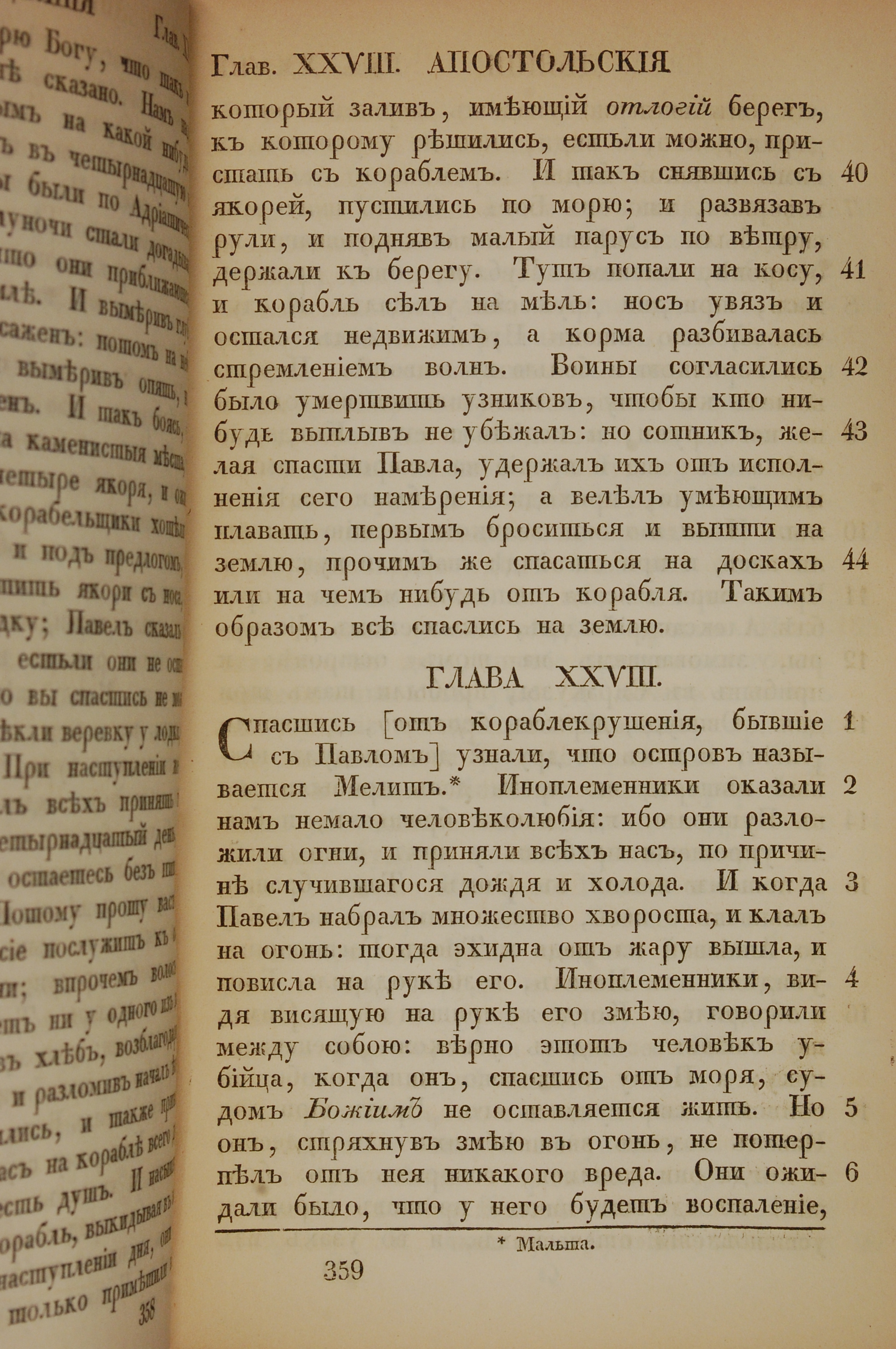 1855年俄文新约全书 使徒行传 27 章 40 节到 28 章 6 节