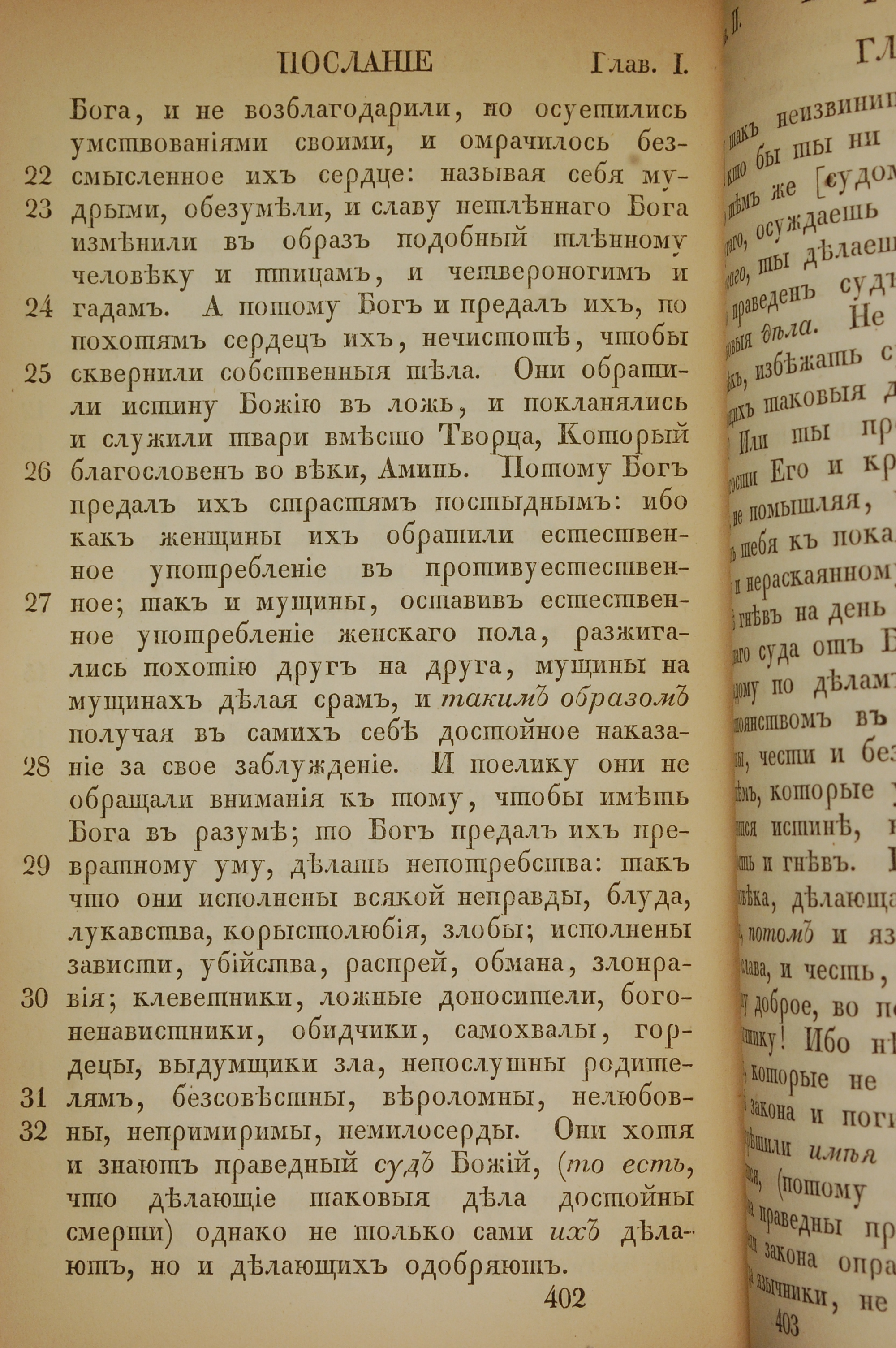 1855年俄文新约全书 罗马书 1 章 22 节到 1 章 32 节