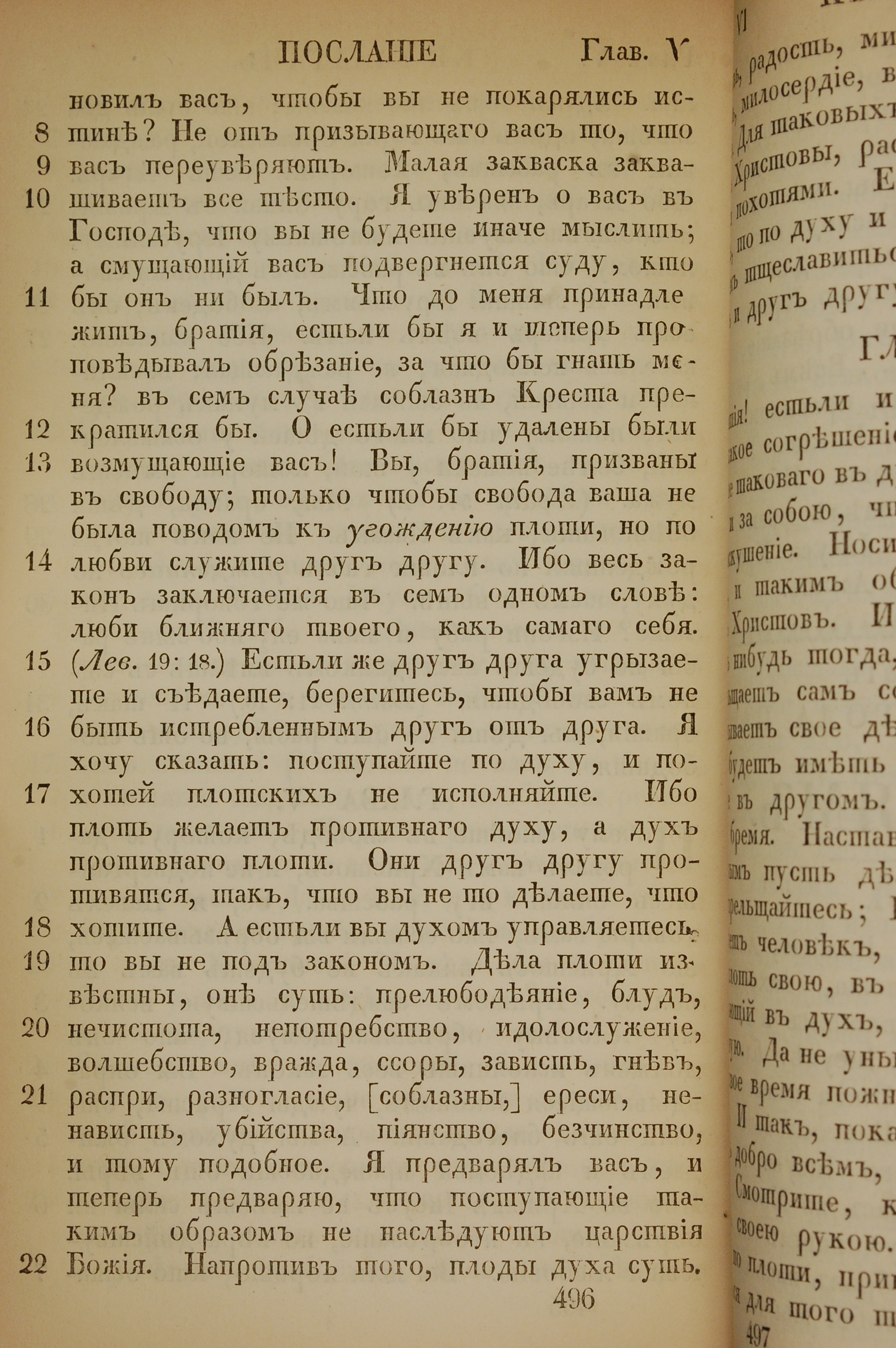 1855年俄文新约全书 加拉太书 5 章 8 节到 5 章 22 节