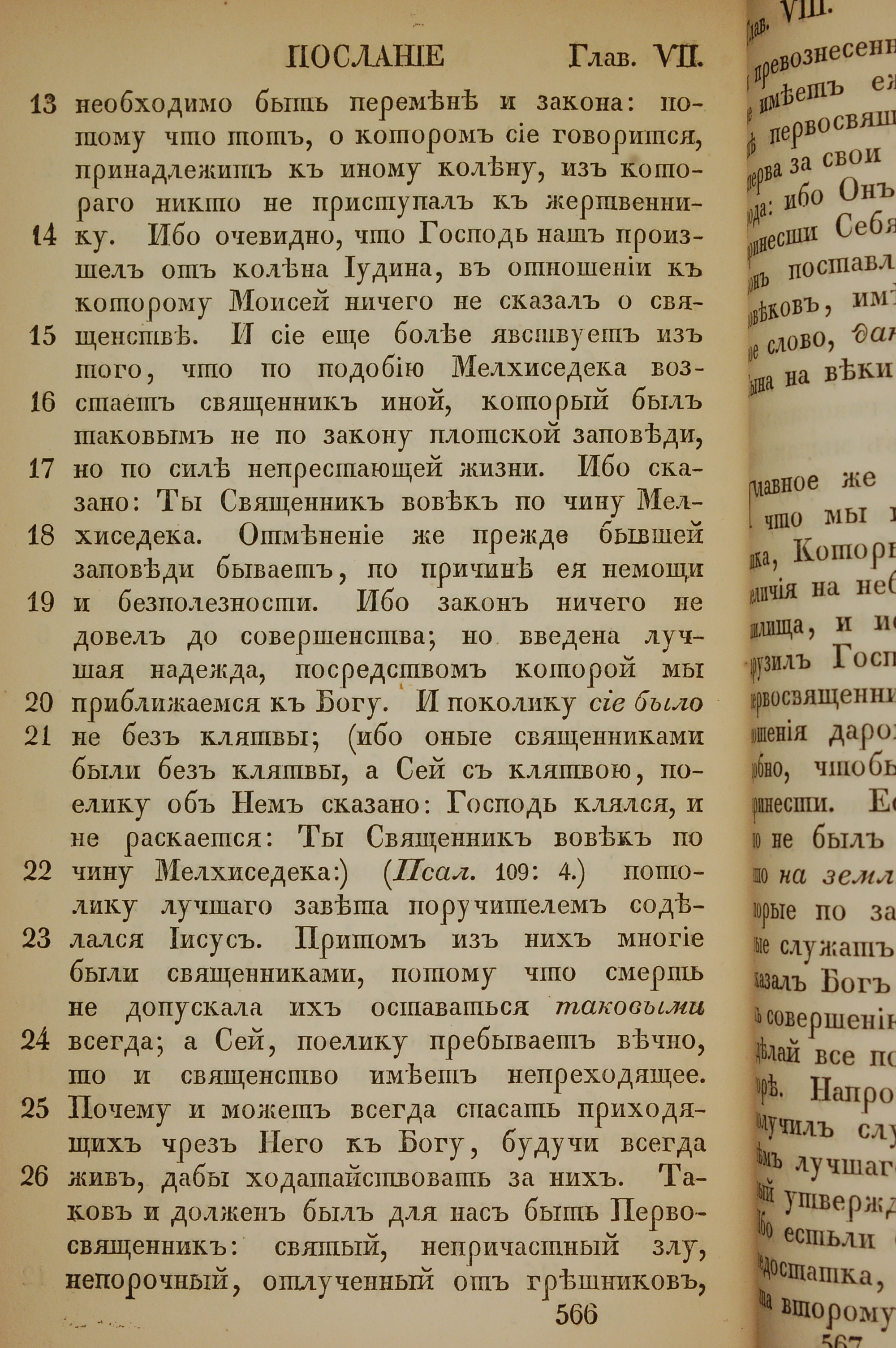 1855年俄文新约全书 希伯来书 7 章 13 节到 7 章 26 节
