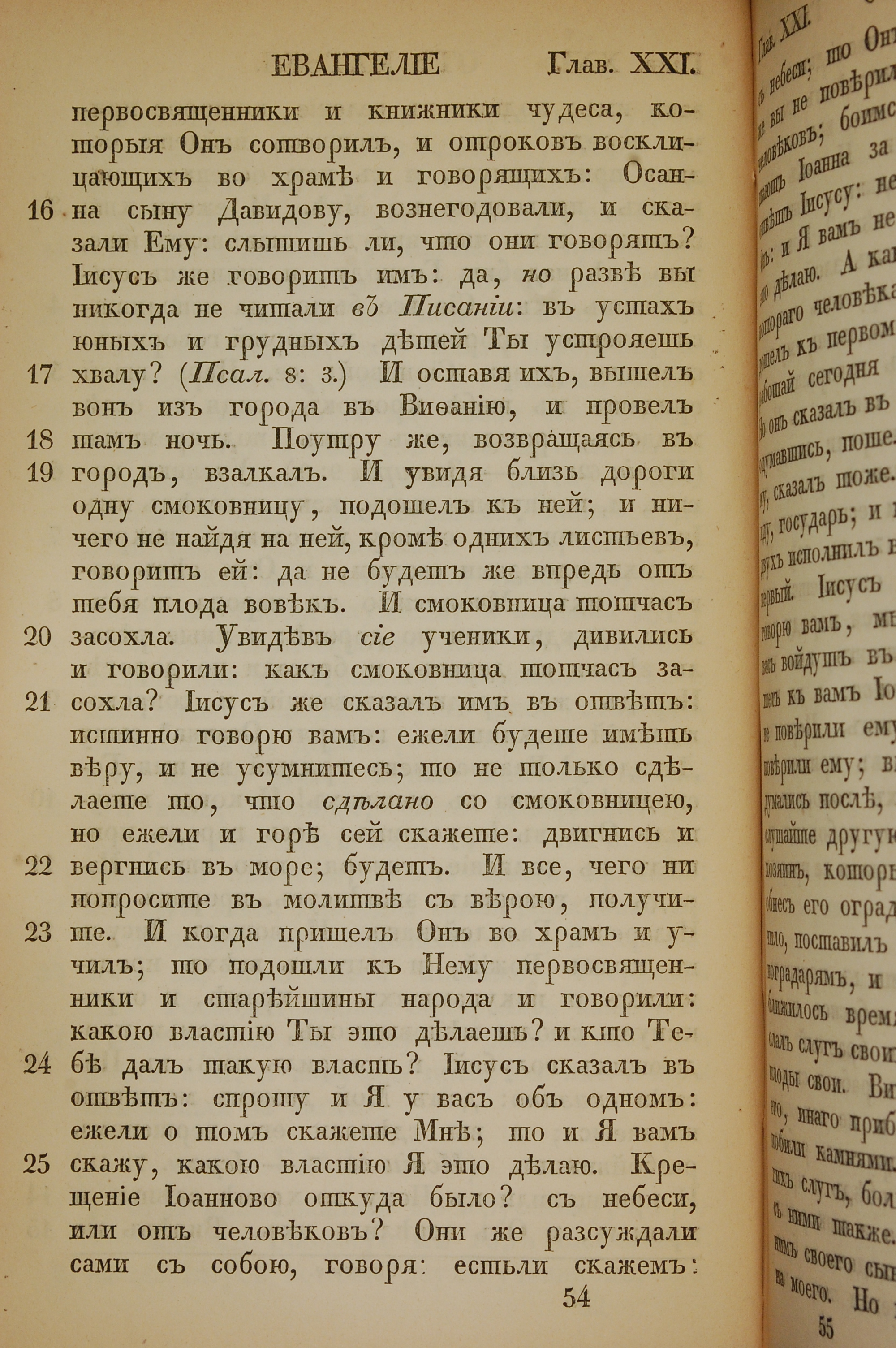 1855年俄文新约全书 马太福音 21 章 16 节到 21 章 25 节