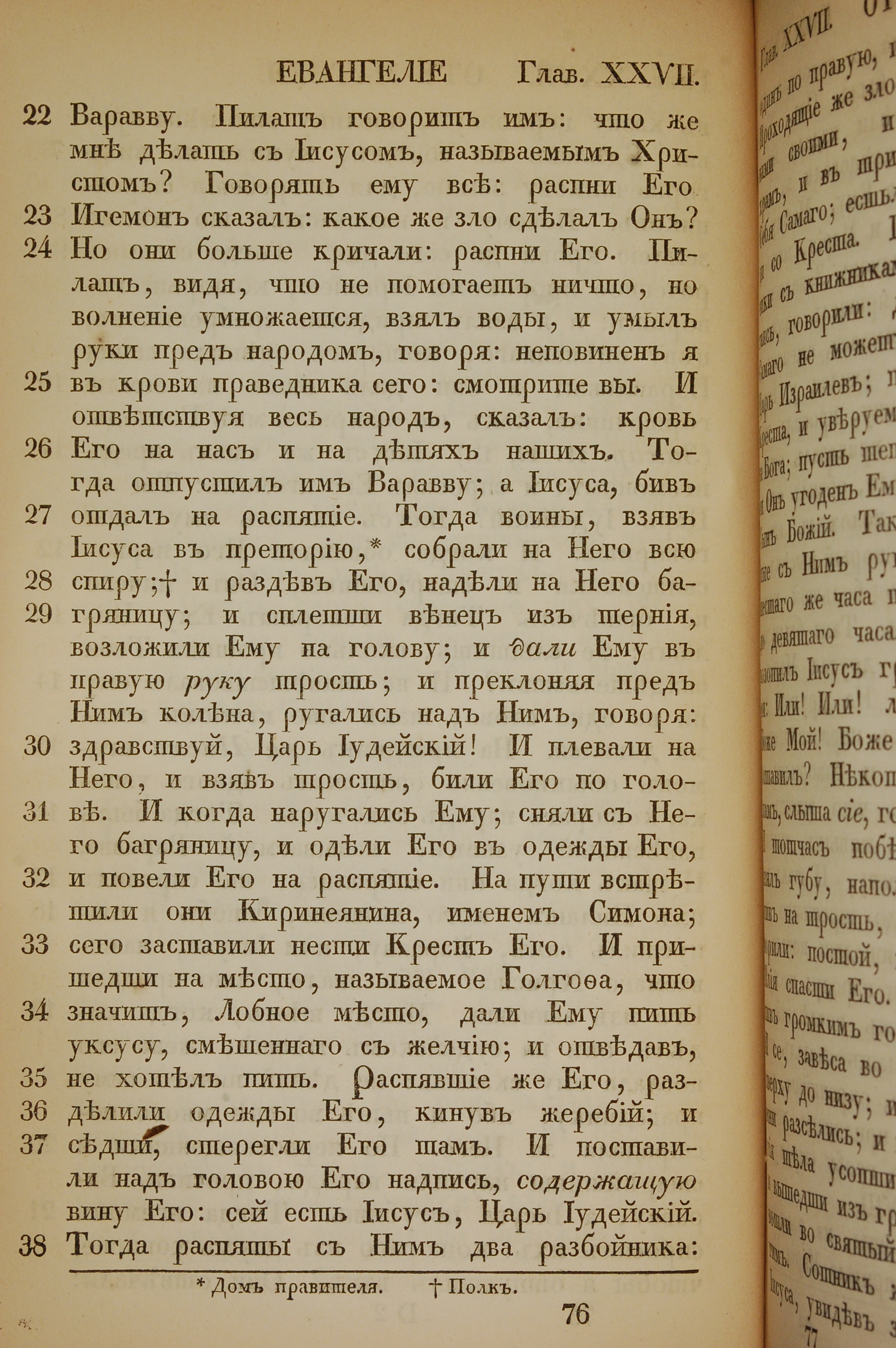1855年俄文新约全书 马太福音 27 章 22 节到 27 章 38 节
