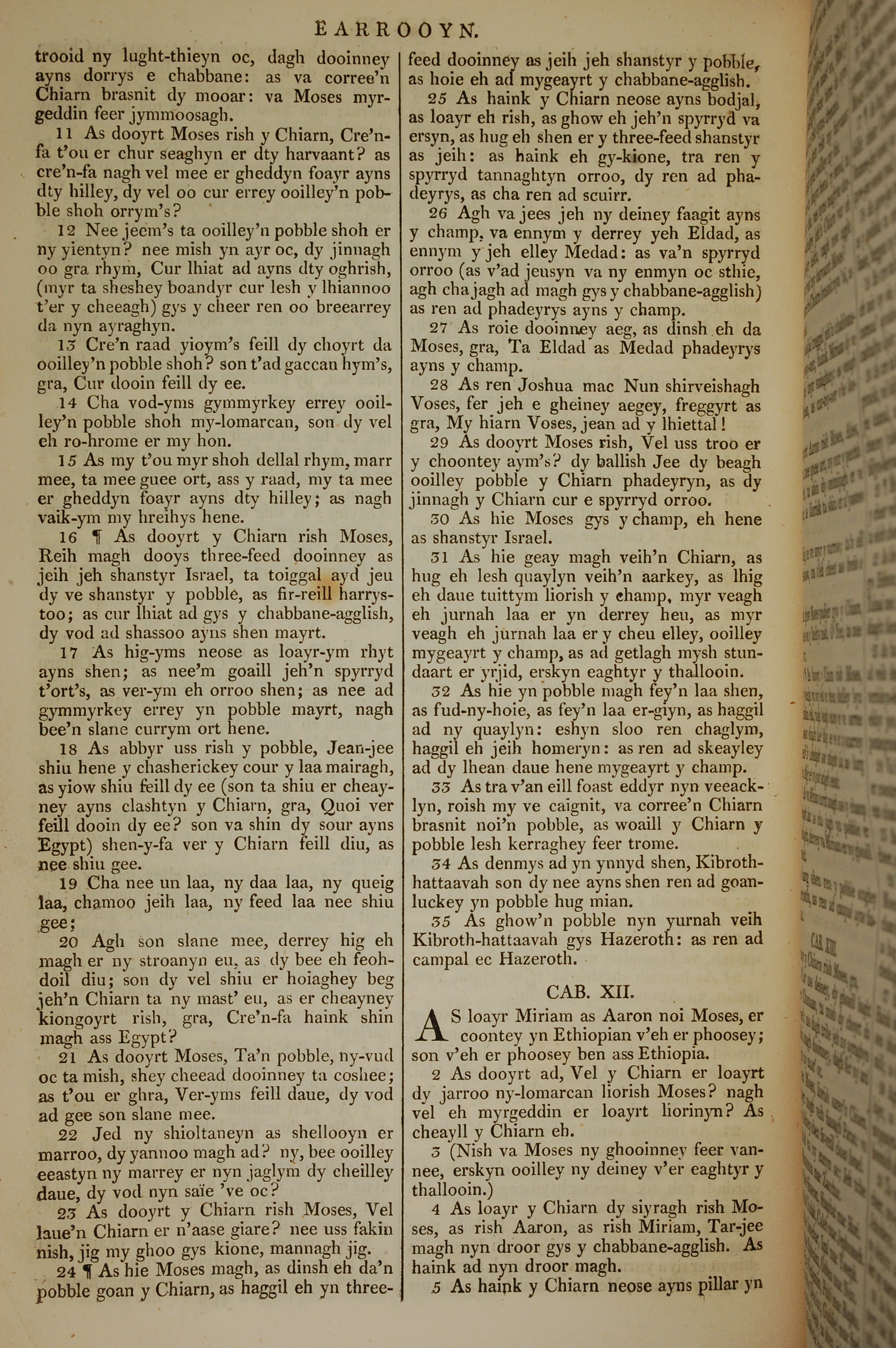 1819年曼岛语圣经 民数记 11 章 11 节到 12 章 5 节