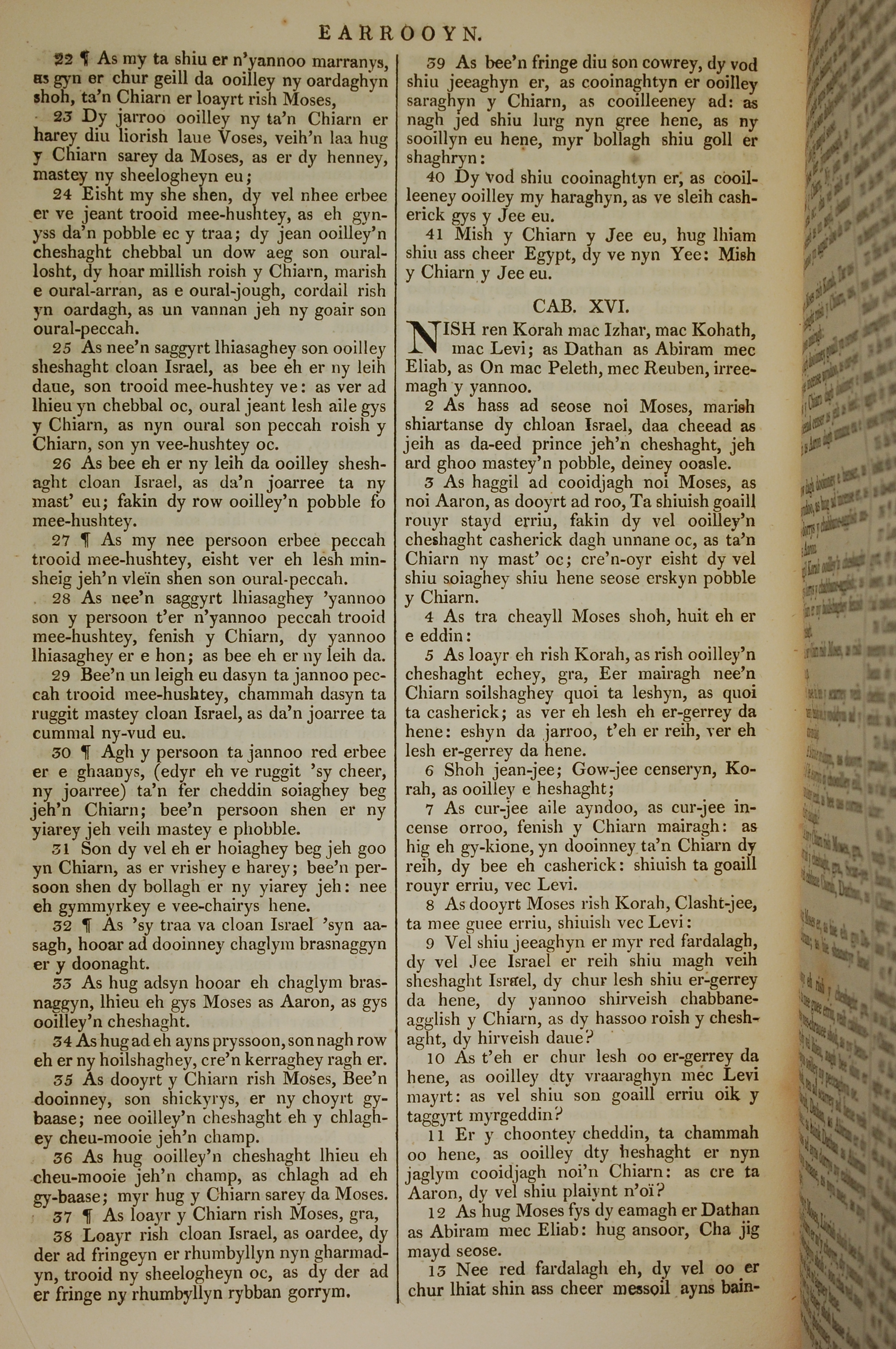 1819年曼岛语圣经 民数记 15 章 22 节到 16 章 13 节