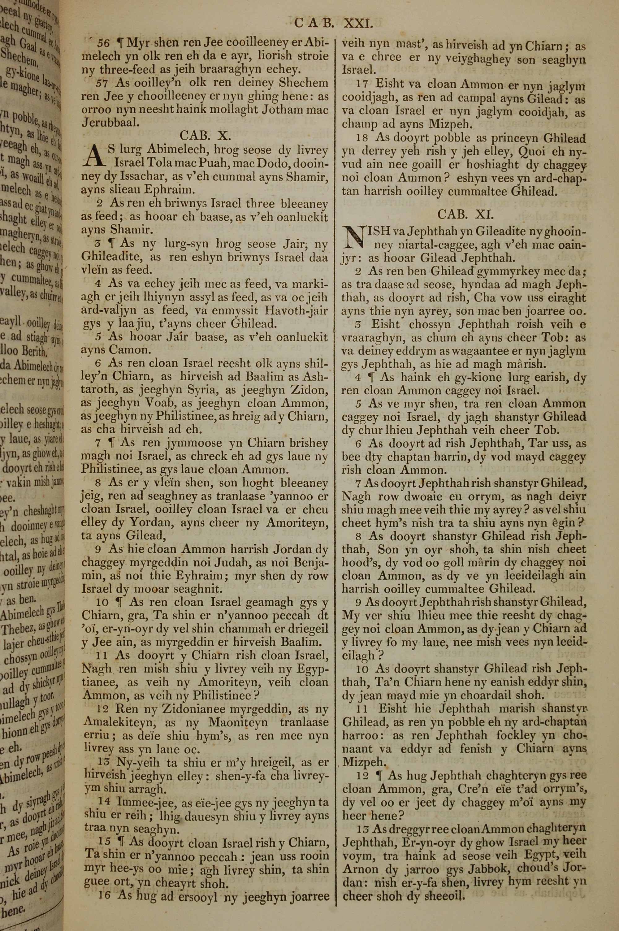 1819年曼岛语圣经 士师记 9 章 56 节到 11 章 13 节