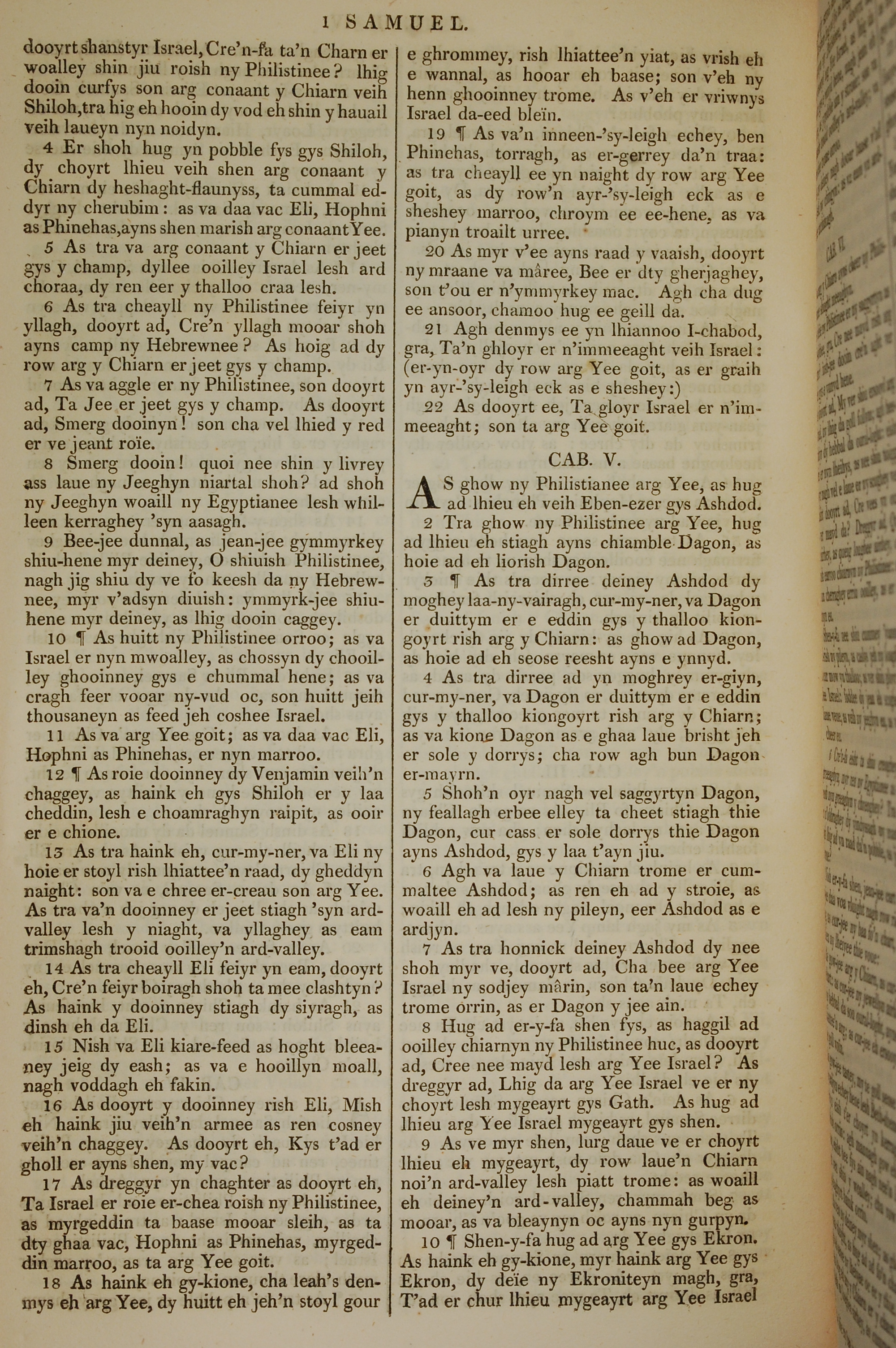 1819年曼岛语圣经 撒母耳记上 4 章 4 节到 5 章 10 节
