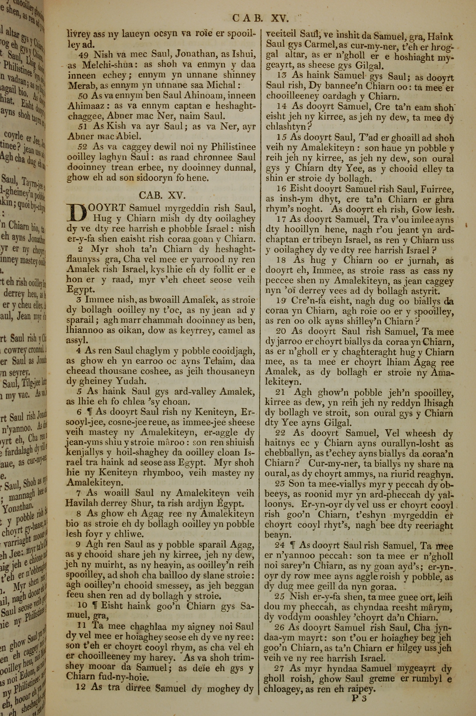 1819年曼岛语圣经 撒母耳记上 14 章 49 节到 15 章 27 节