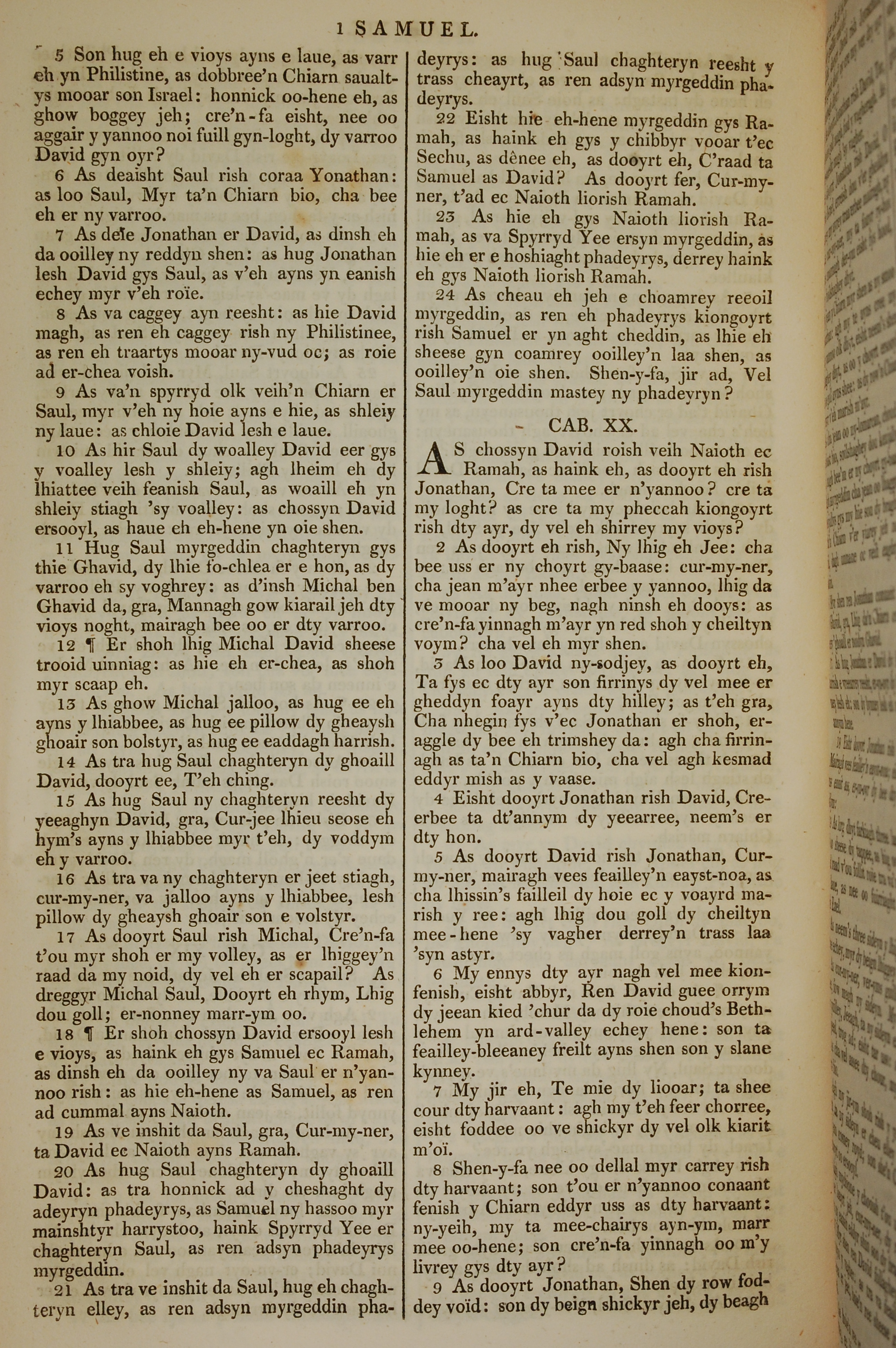 1819年曼岛语圣经 撒母耳记上 19 章 5 节到 20 章 9 节