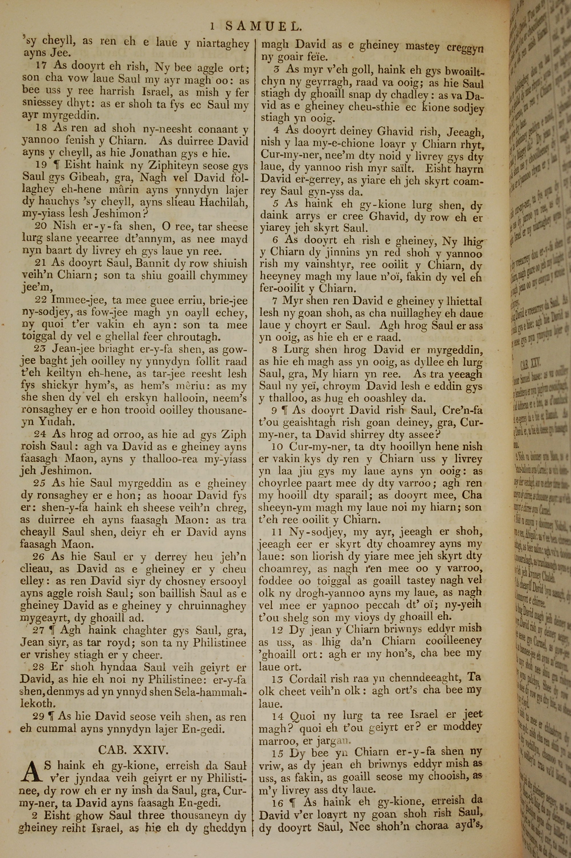 1819年曼岛语圣经 撒母耳记上 23 章 17 节到 24 章 16 节