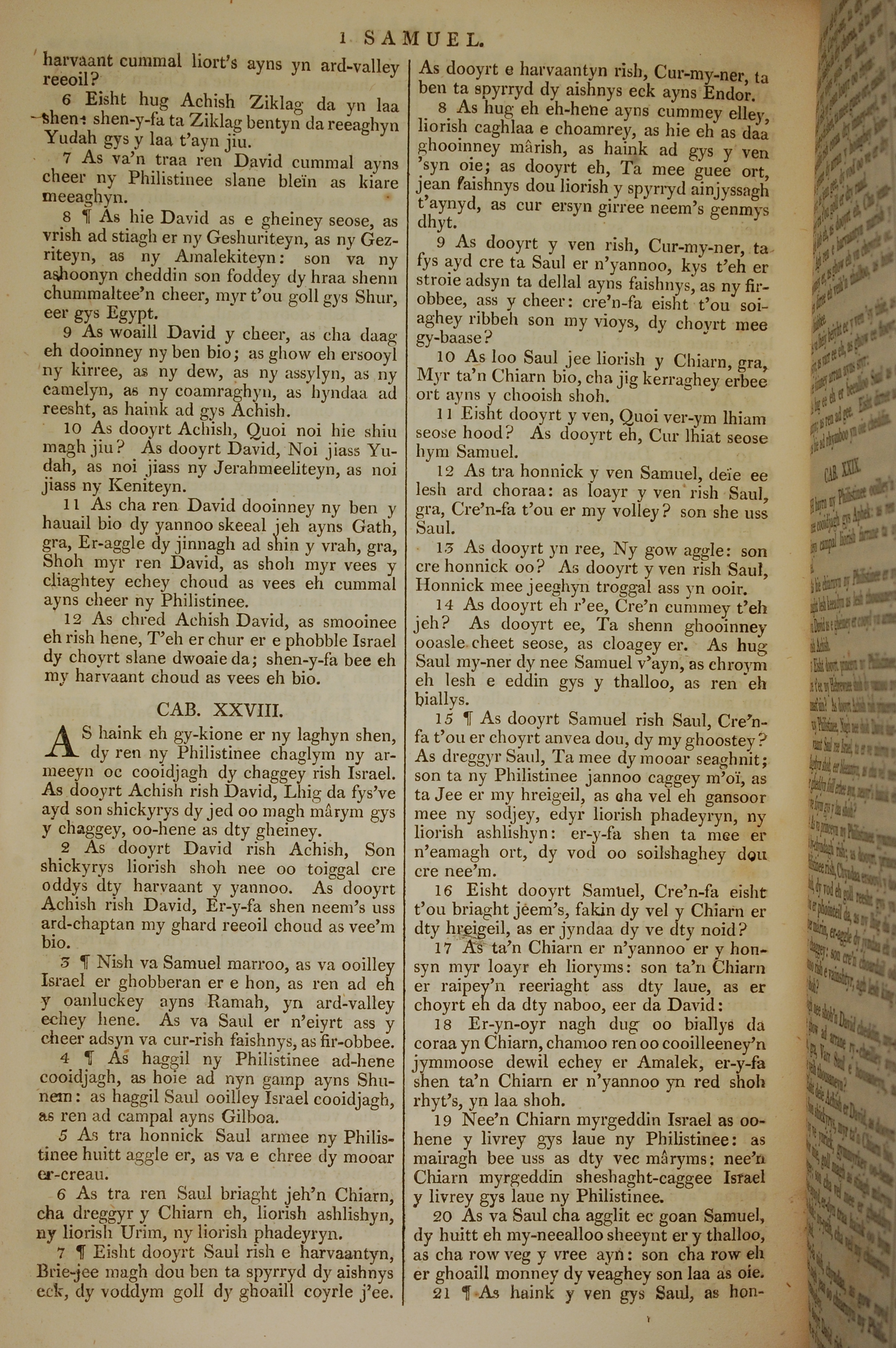 1819年曼岛语圣经 撒母耳记上 27 章 6 节到 28 章 21 节