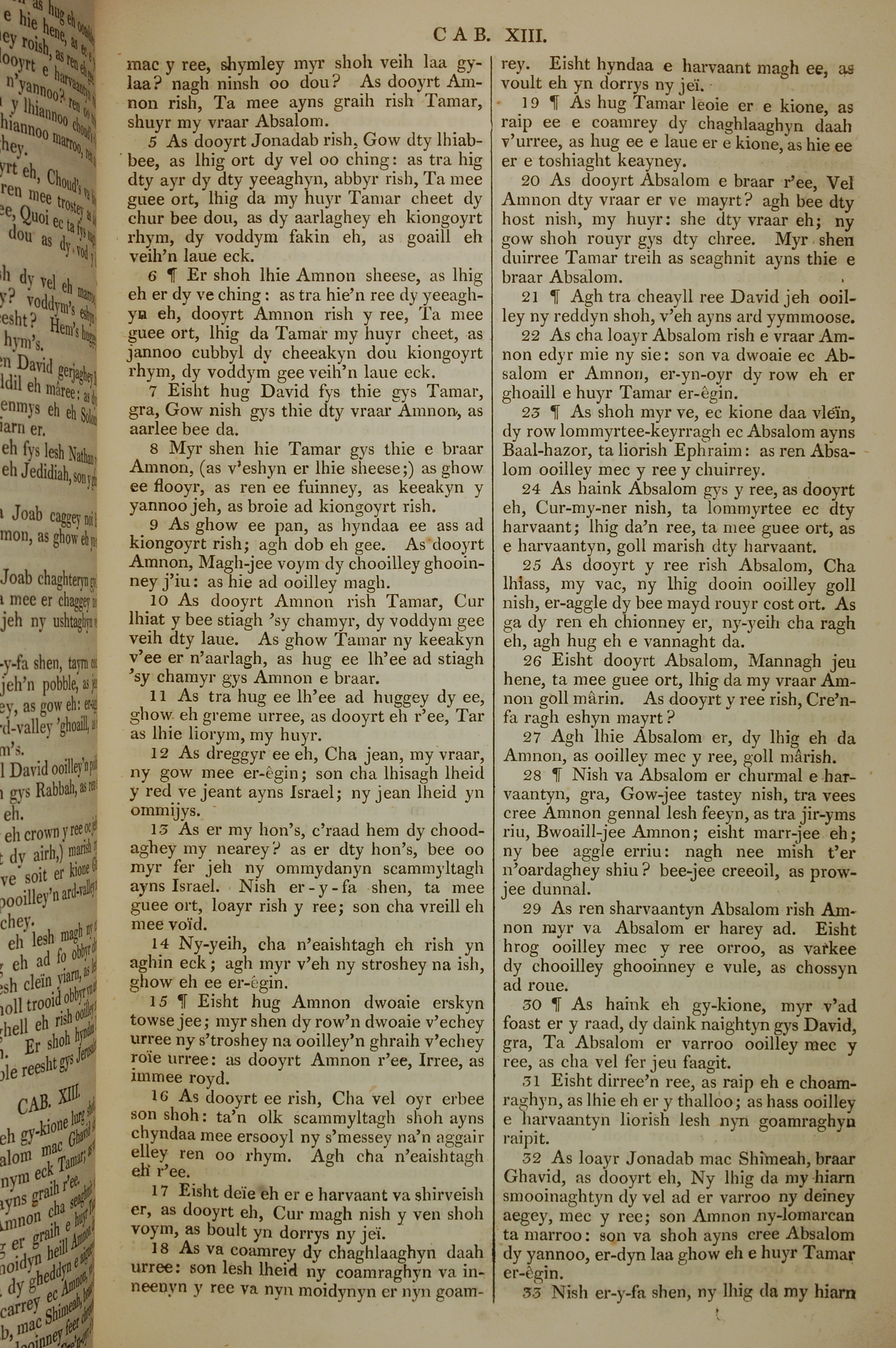 1819年曼岛语圣经 撒母耳记下 13 章 5 节到 13 章 33 节