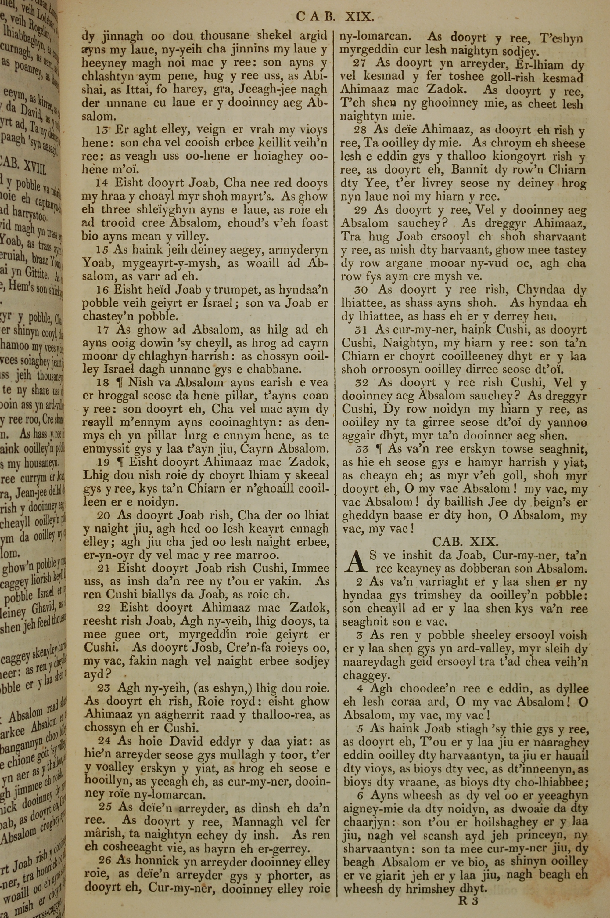 1819年曼岛语圣经 撒母耳记下 18 章 13 节到 19 章 6 节