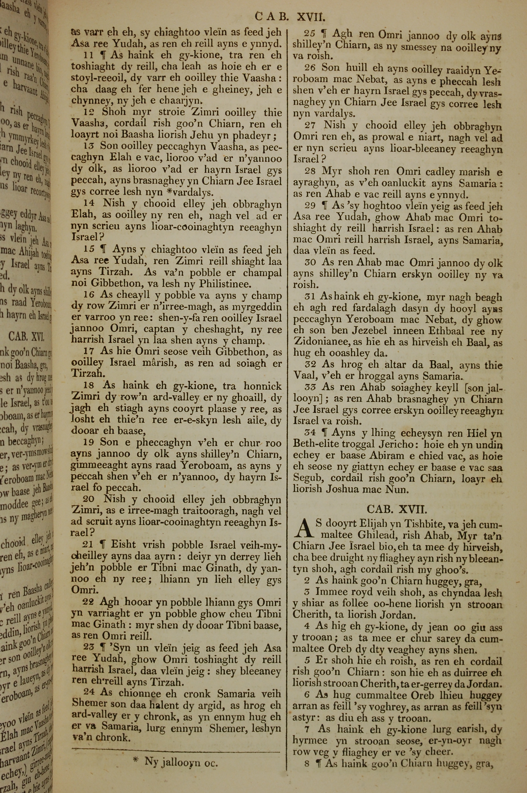 1819年曼岛语圣经 列王纪上 16 章 11 节到 17 章 8 节