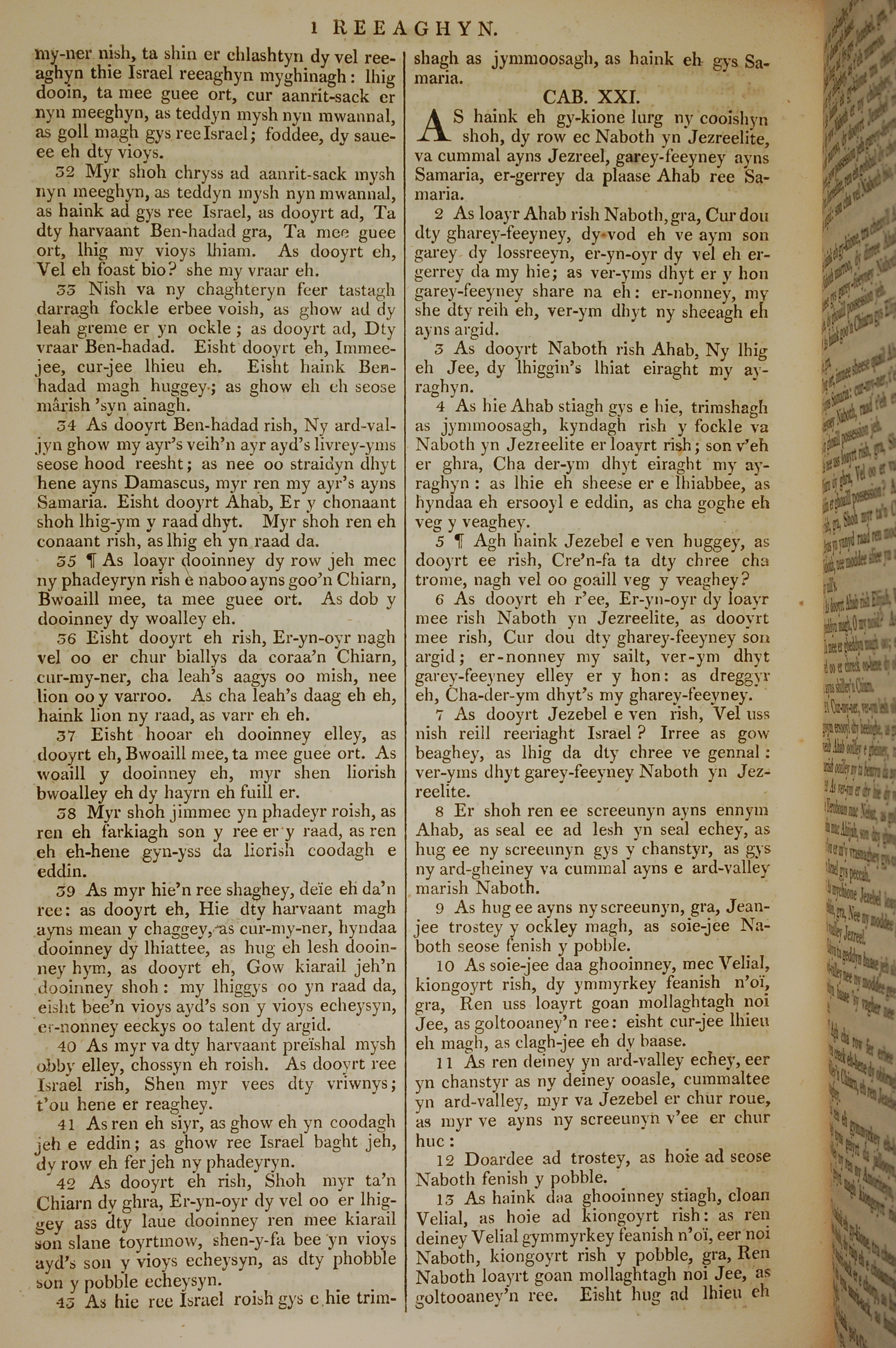 1819年曼岛语圣经 列王纪上 20 章 32 节到 21 章 13 节