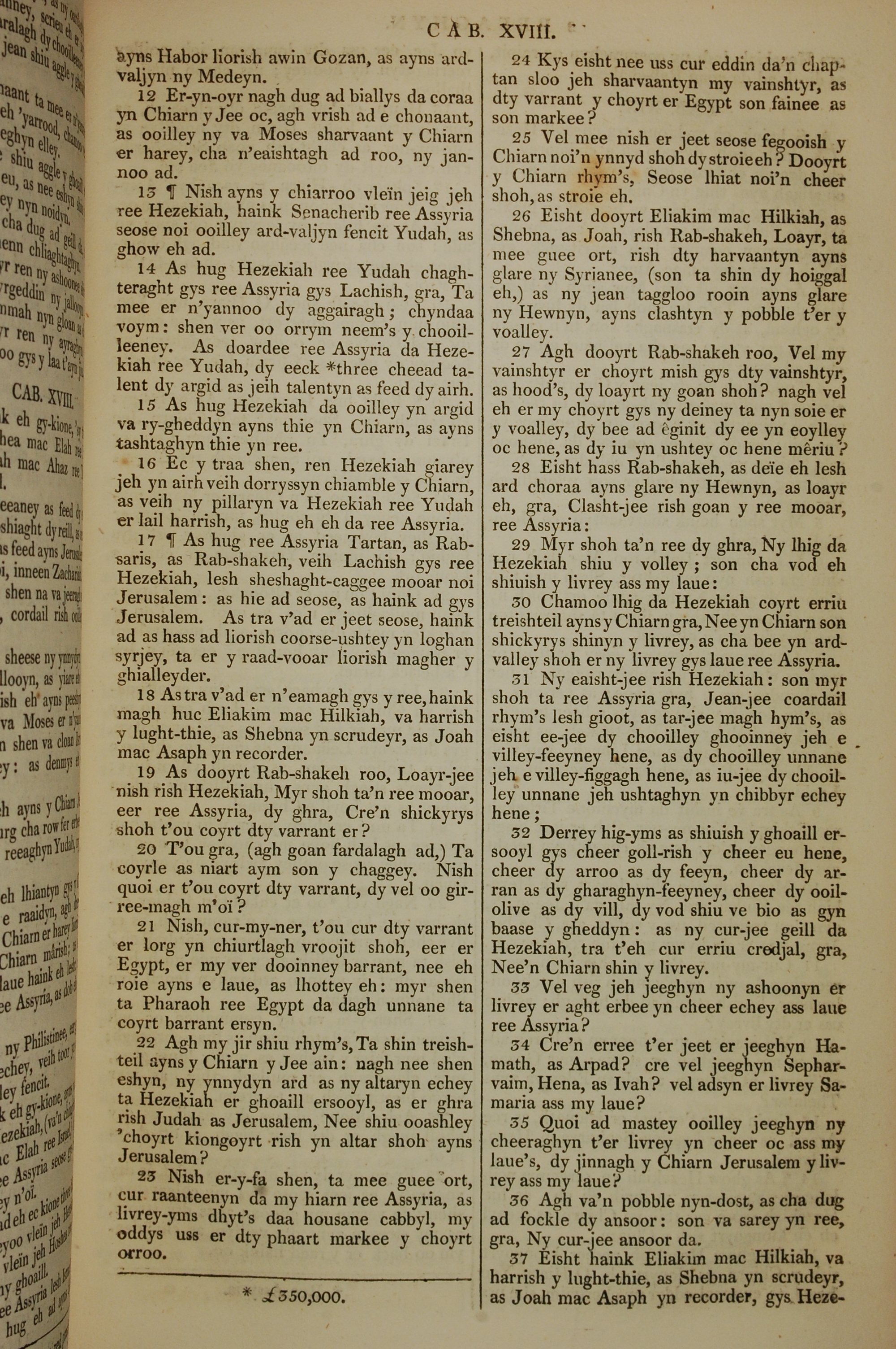 1819年曼岛语圣经 列王纪下 18 章 12 节到 18 章 37 节