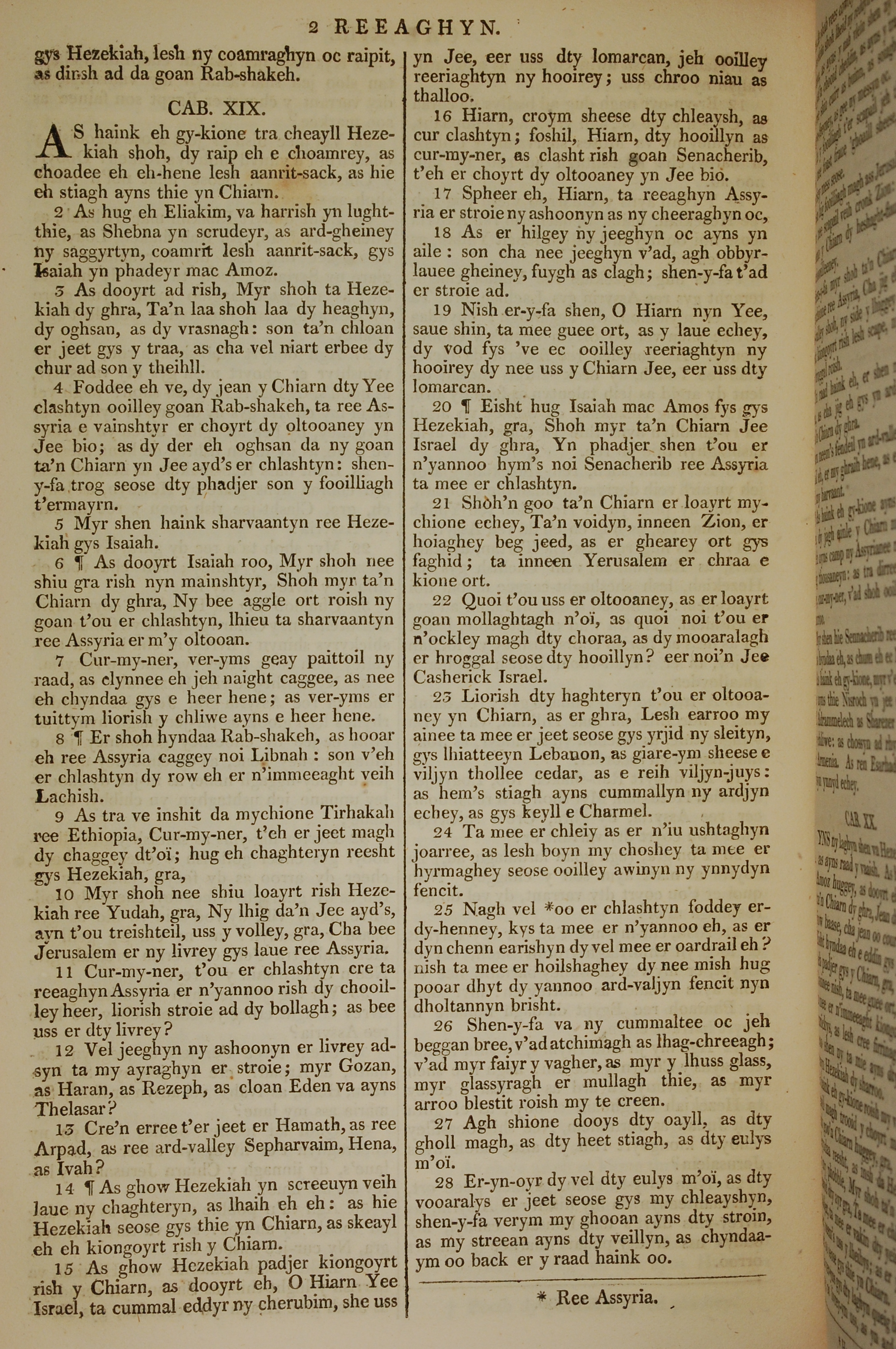 1819年曼岛语圣经 列王纪下 19 章 1 节到 19 章 28 节