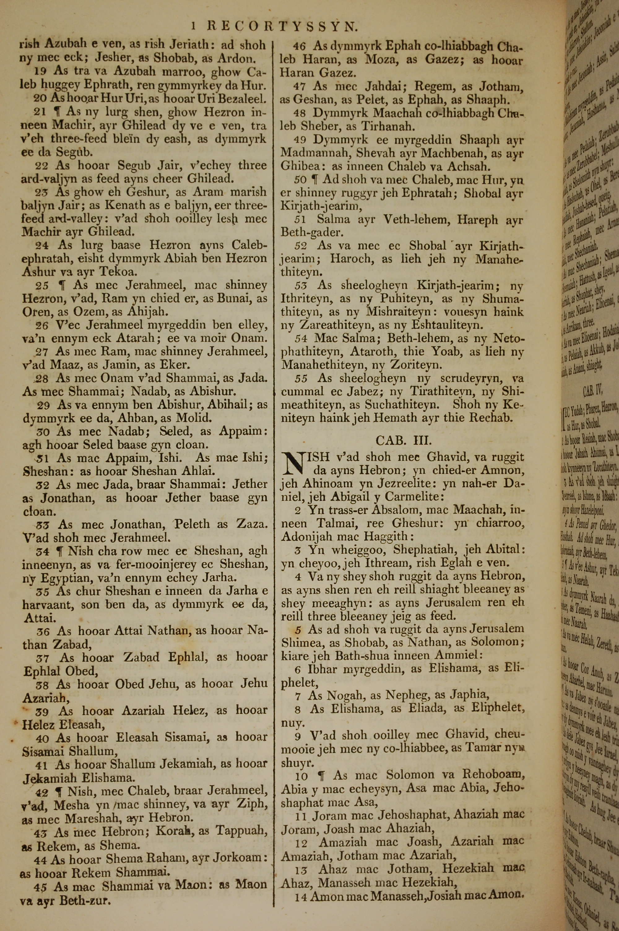 1819年曼岛语圣经 历代志上 2 章 19 节到 3 章 14 节