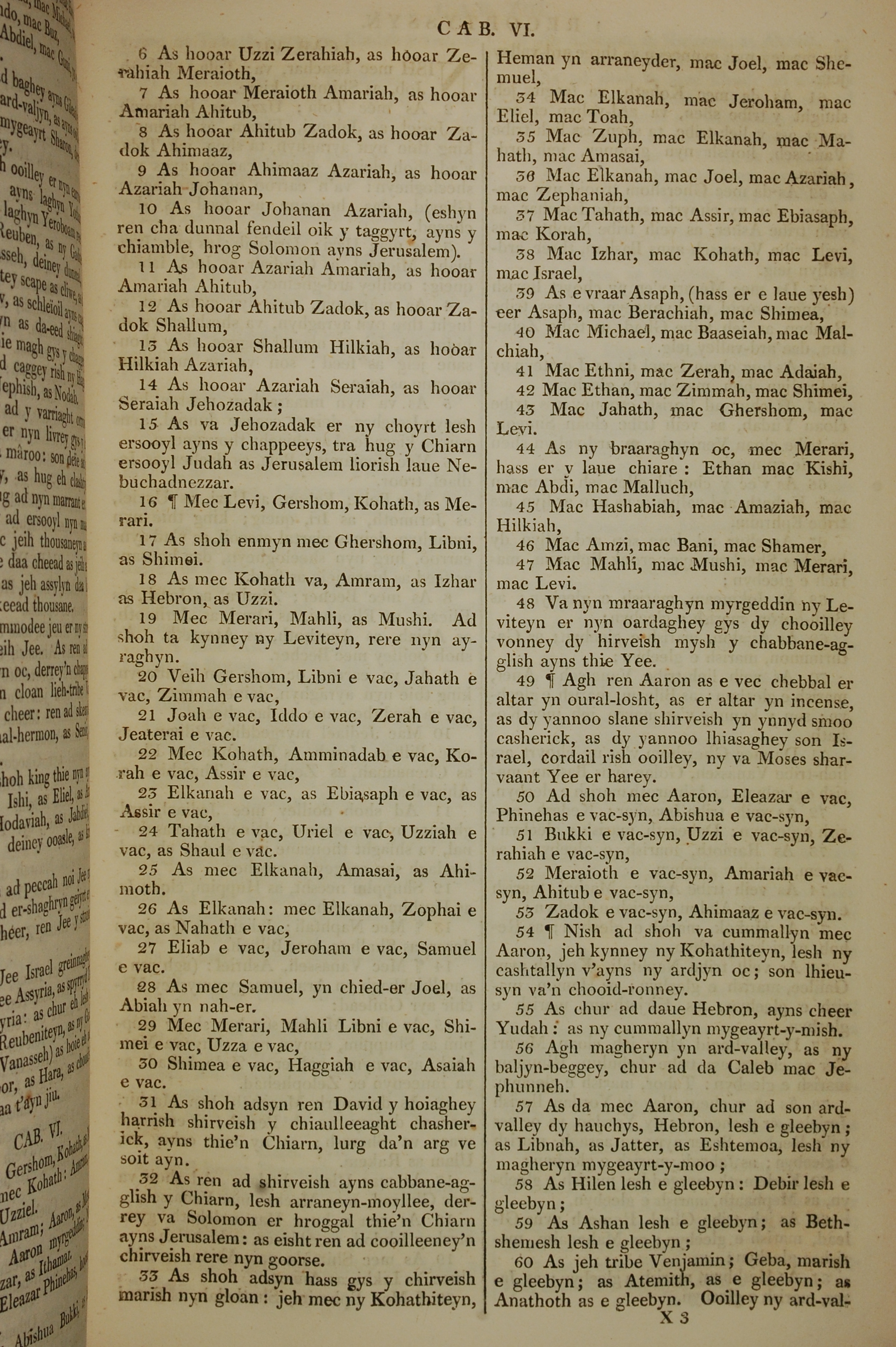 1819年曼岛语圣经 历代志上 6 章 6 节到 6 章 60 节