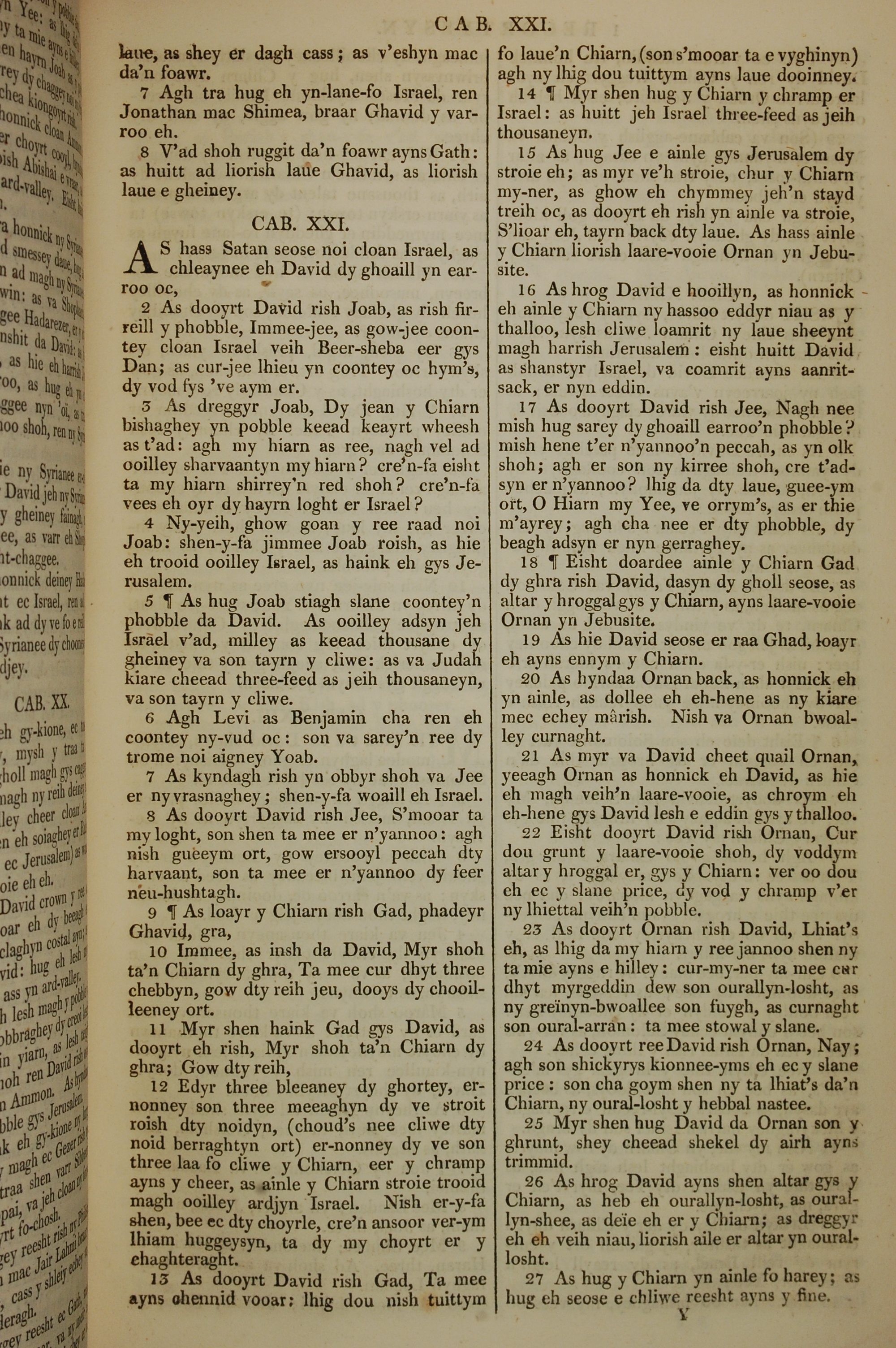 1819年曼岛语圣经 历代志上 20 章 7 节到 21 章 27 节