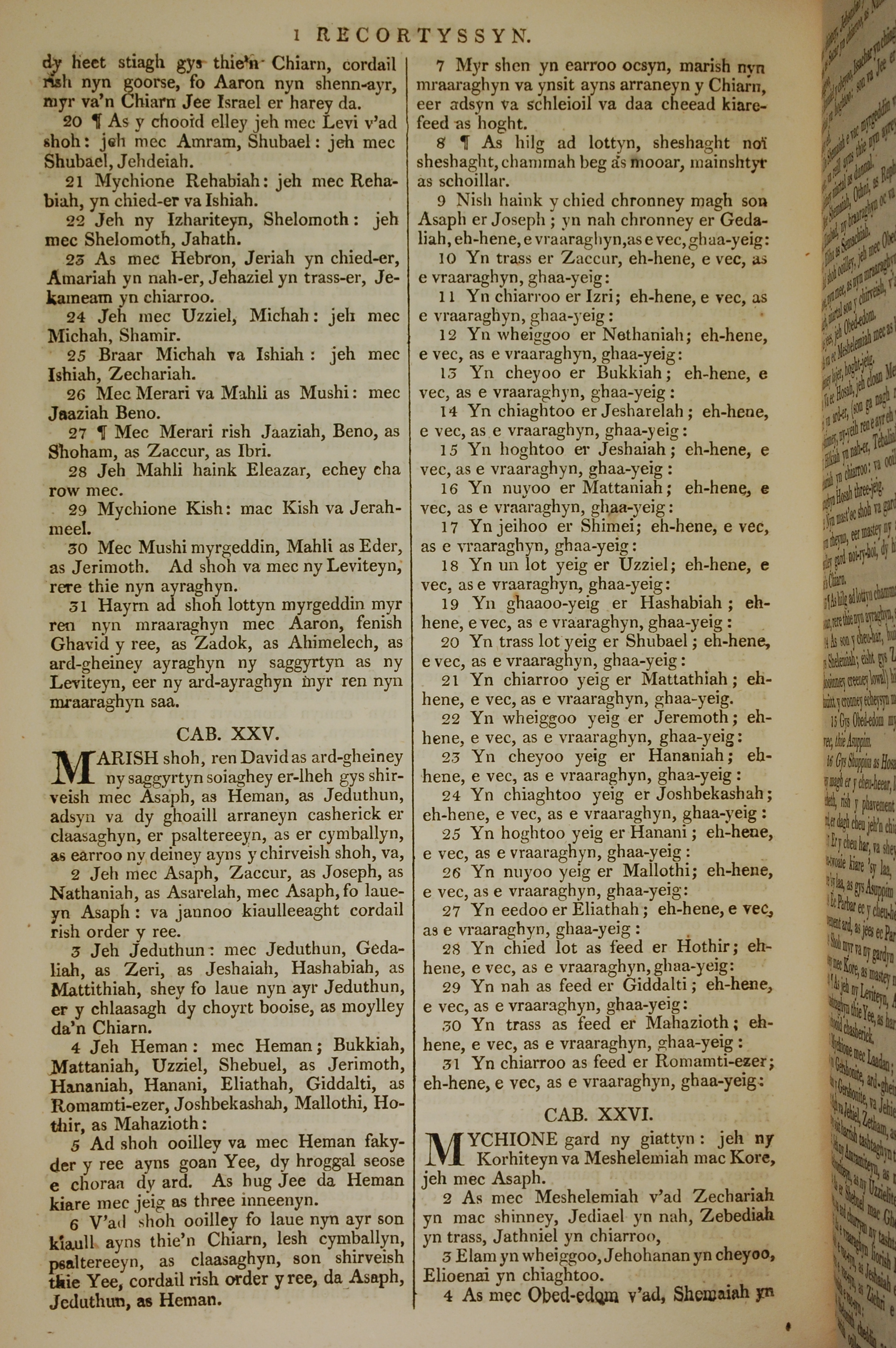1819年曼岛语圣经 历代志上 24 章 20 节到 26 章 4 节